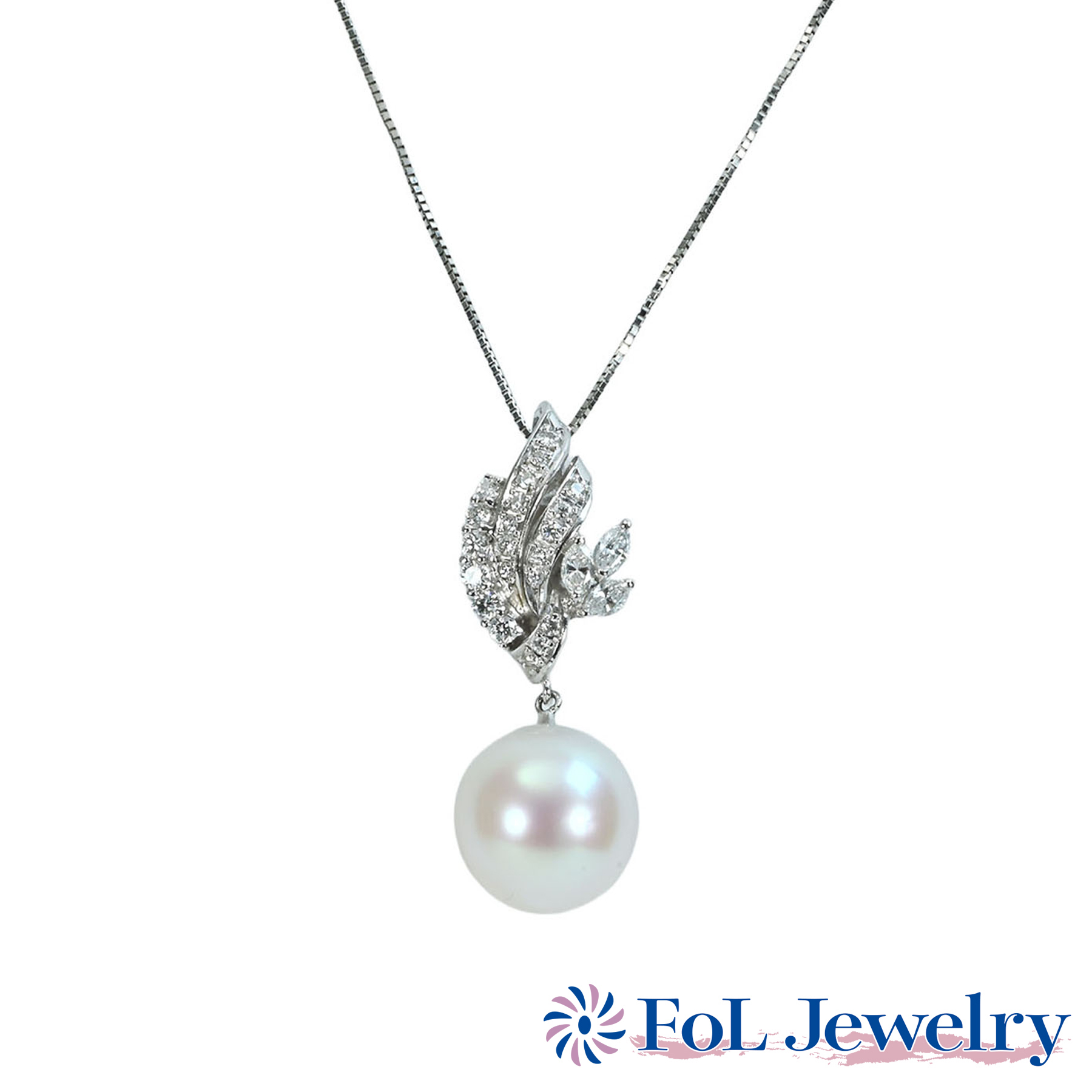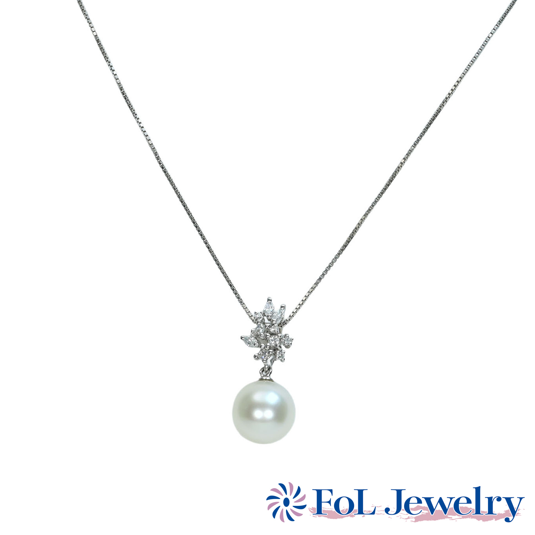 白蝶パールペンダント K18WG 9.5mm D0.25ct