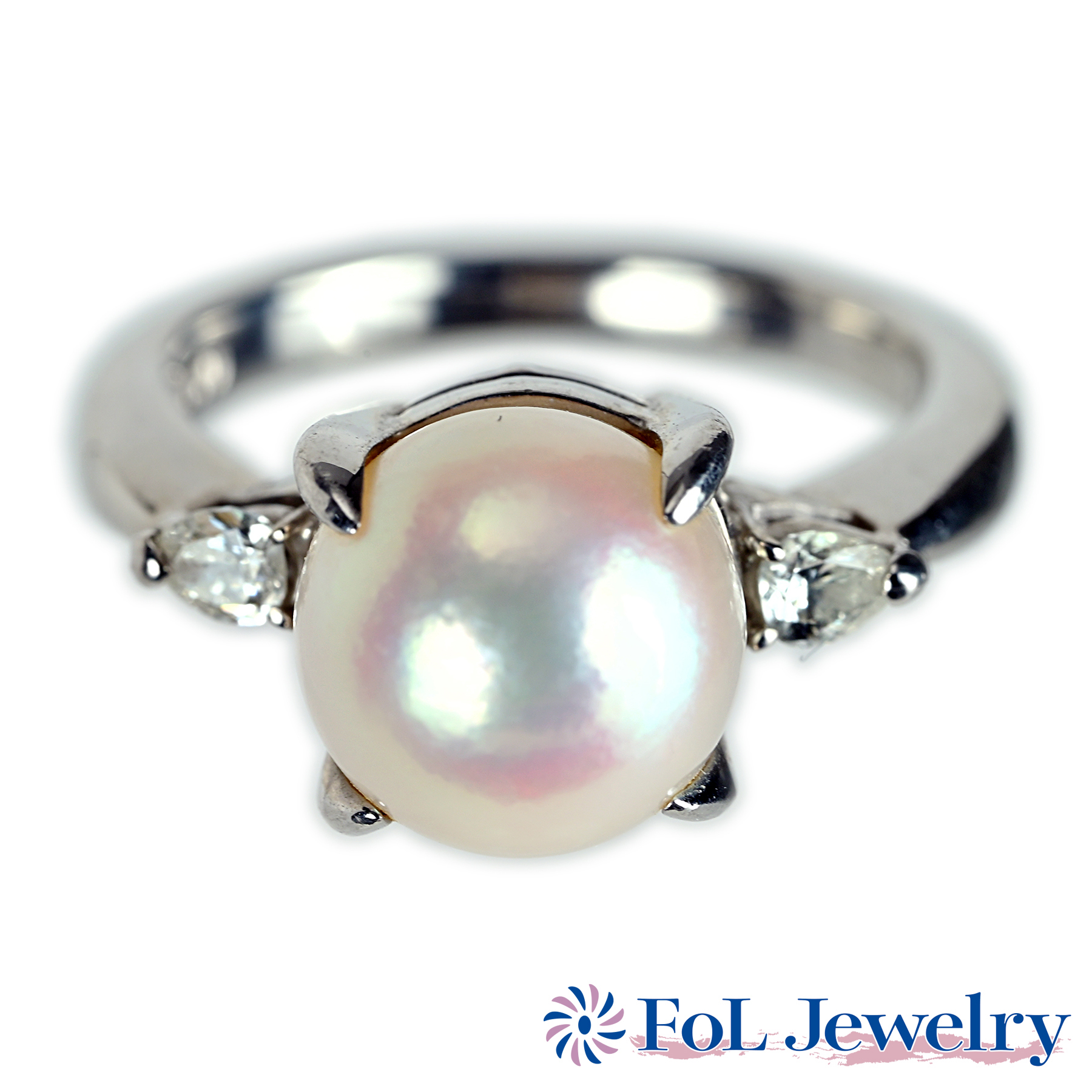 アコヤパールリング PT850 9.5mm D0.18ct