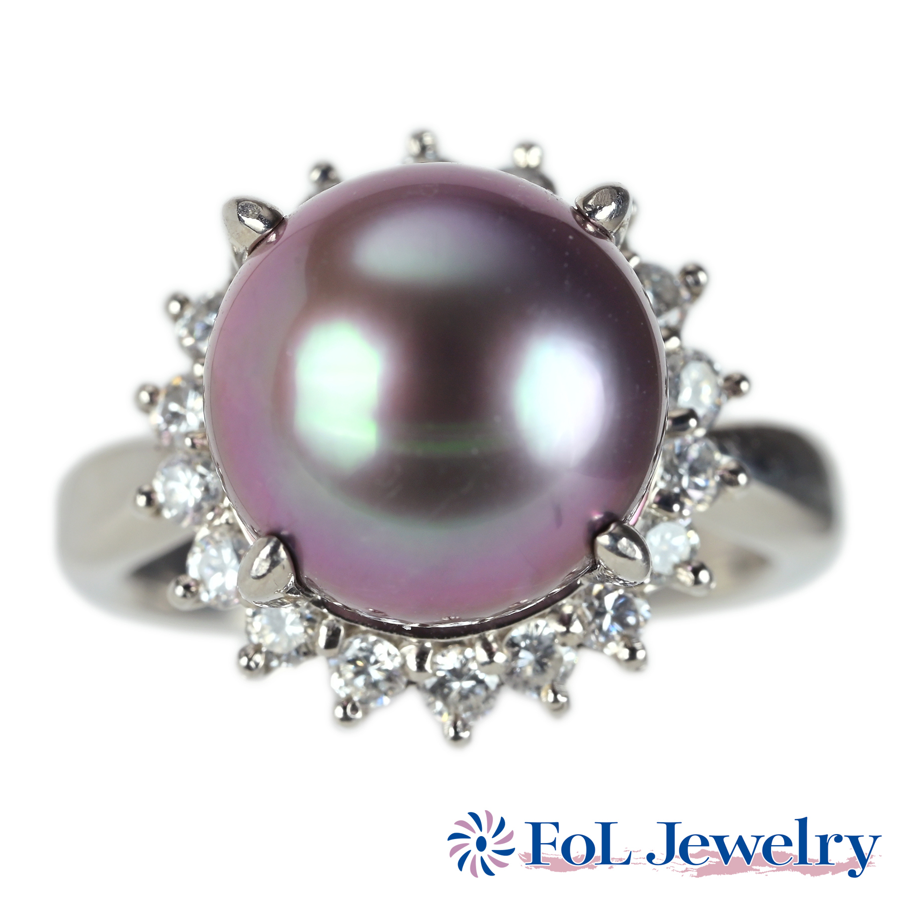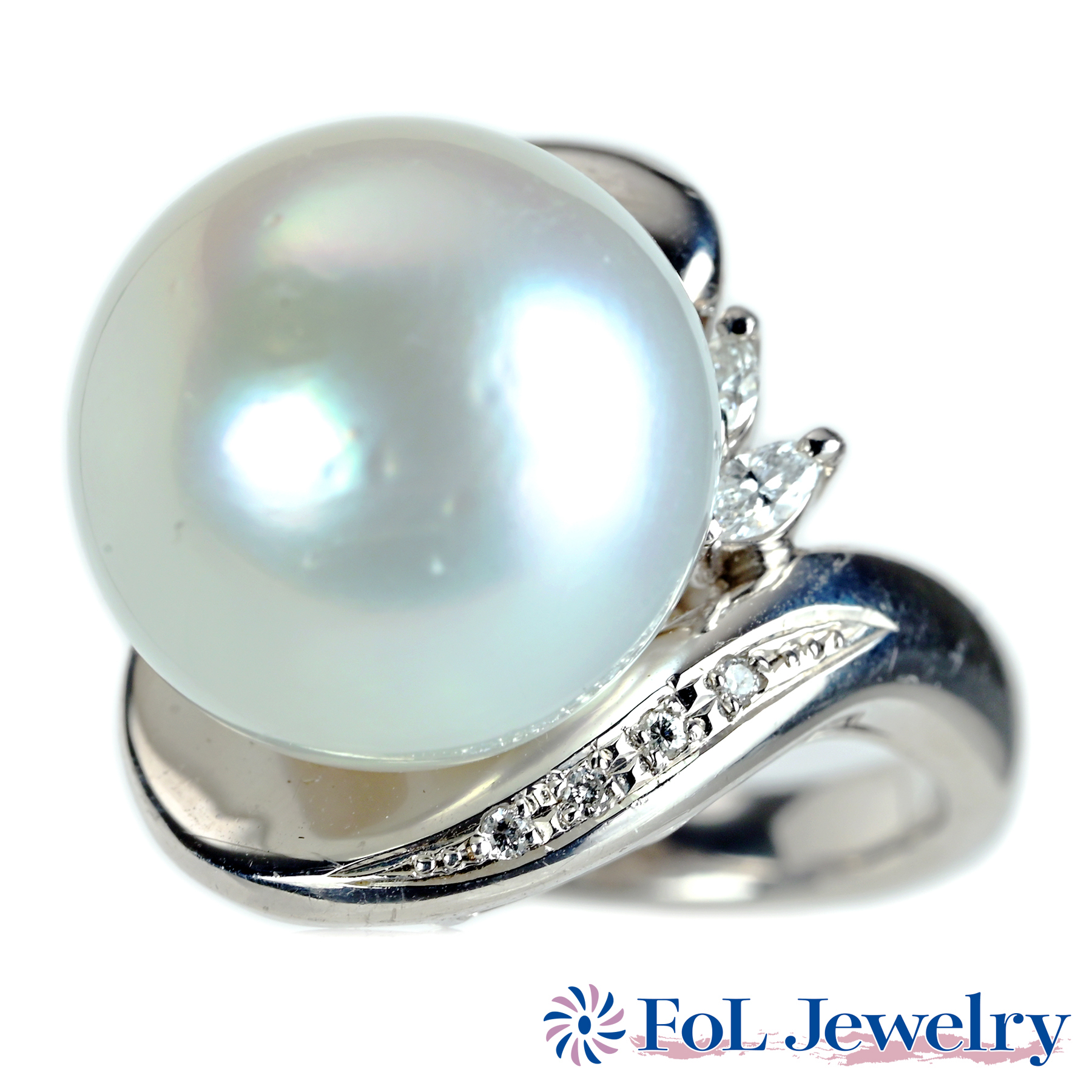 南洋白蝶パールリング PT900 14.5mm D0.12ct