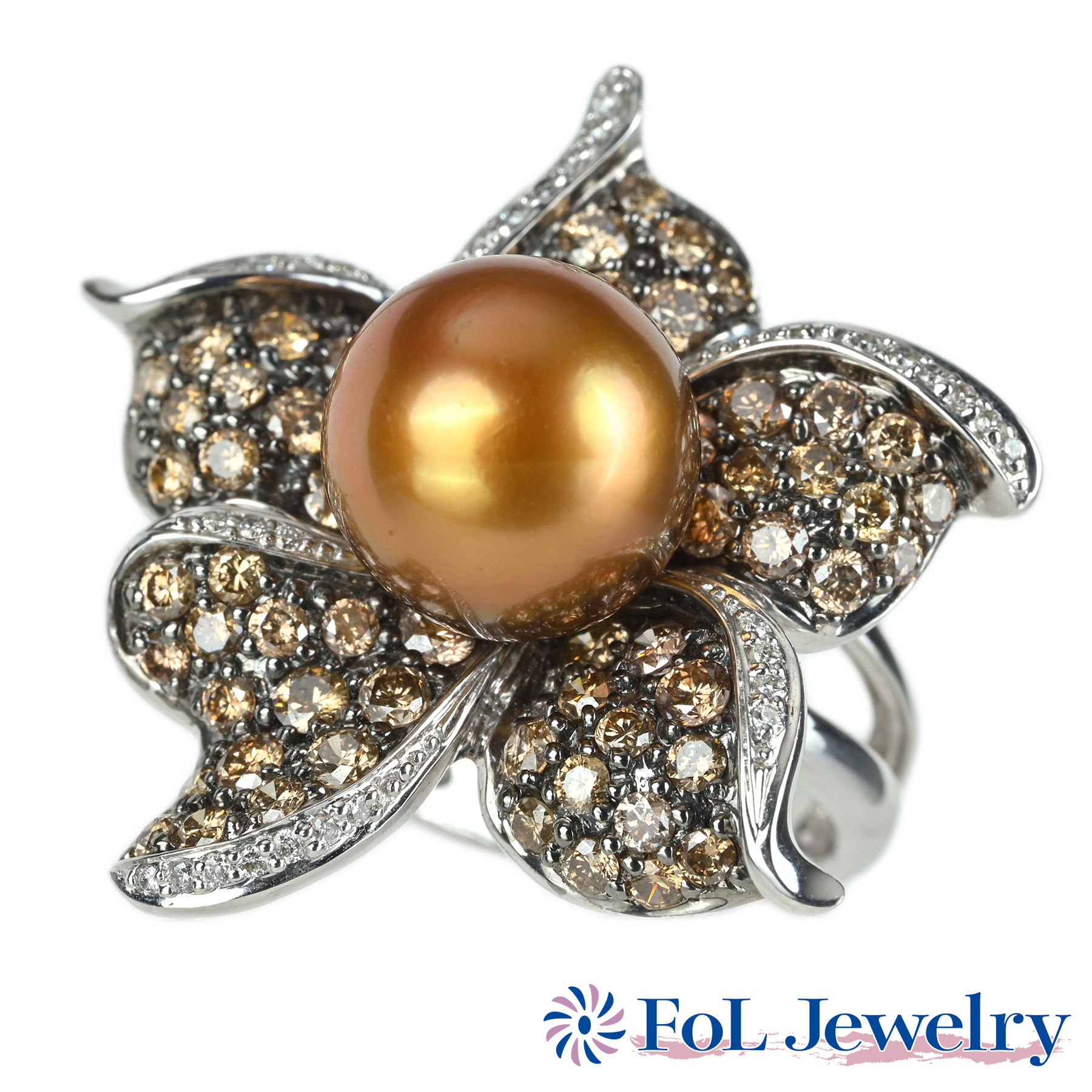 ゴールデンパールリング K18WG P11.7mm D2.68ct