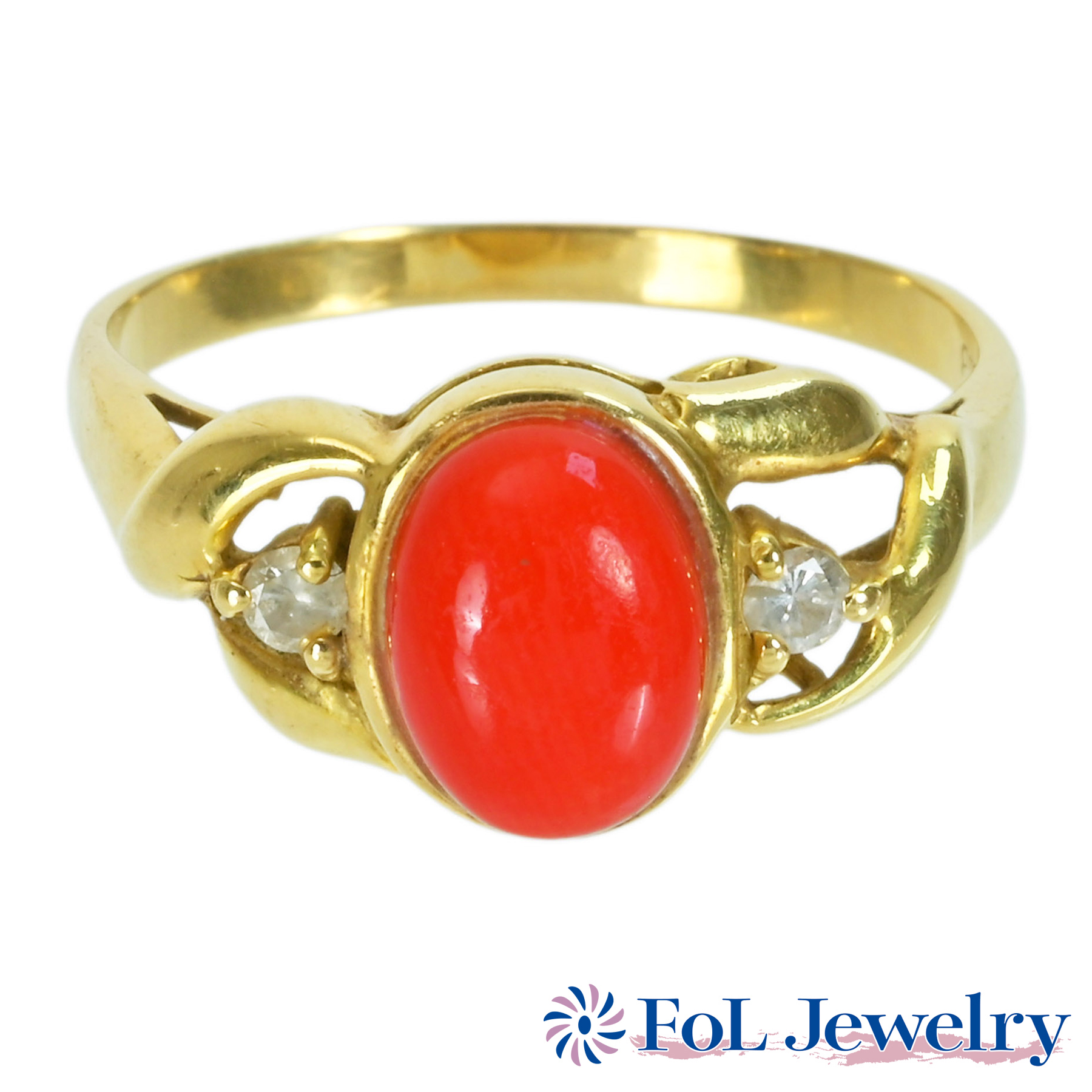 珊瑚ペンダント K18YG CO4.5mm-7.5mm D0.12ct