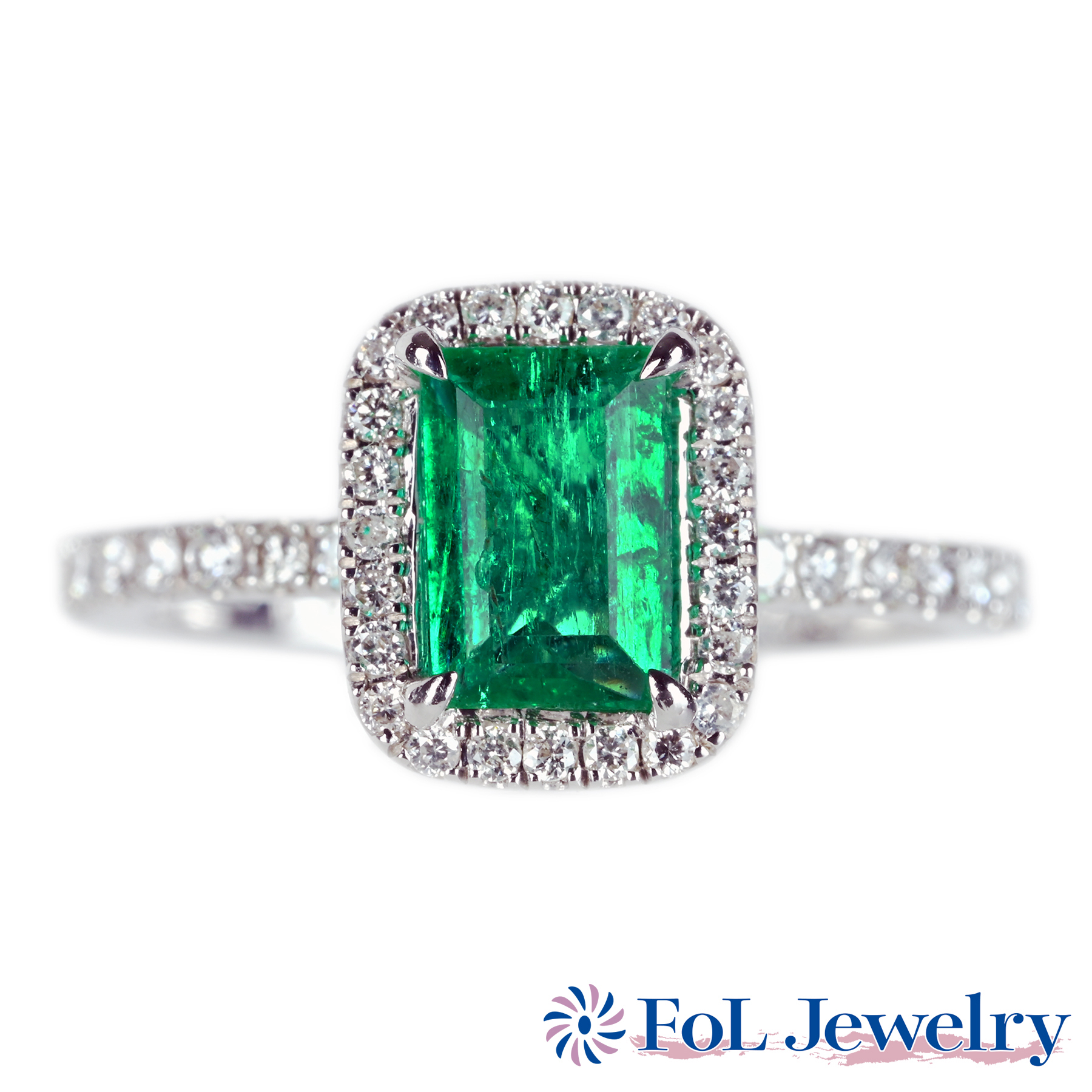 エメラルドリング K18WG E0.85ct D0.42ct