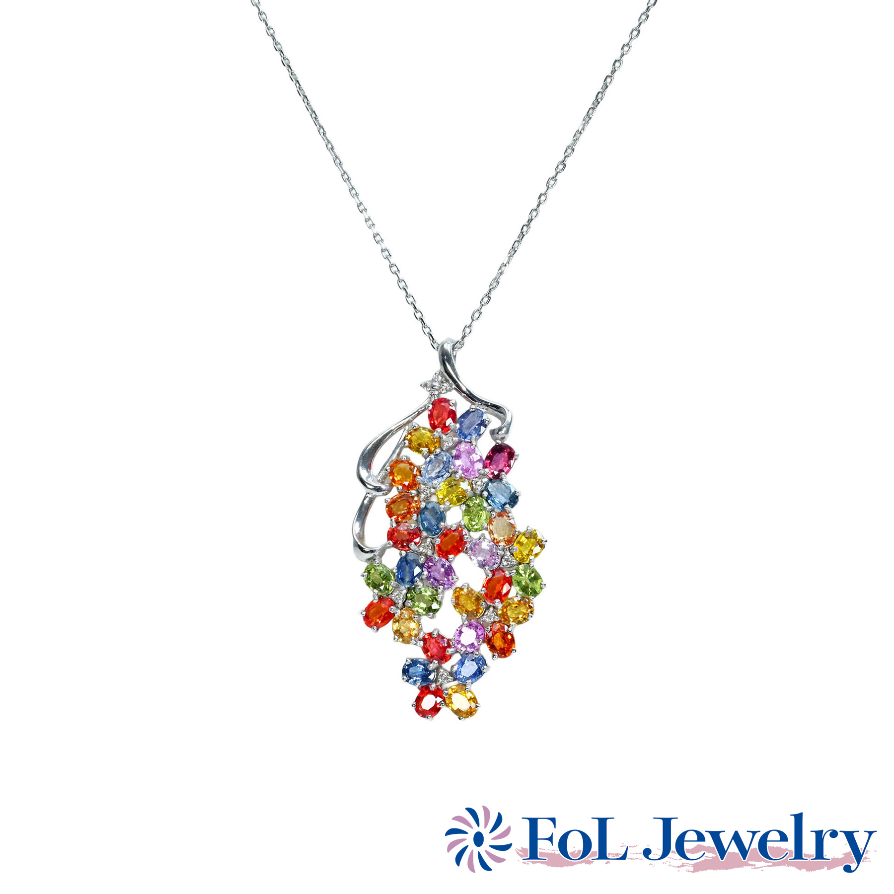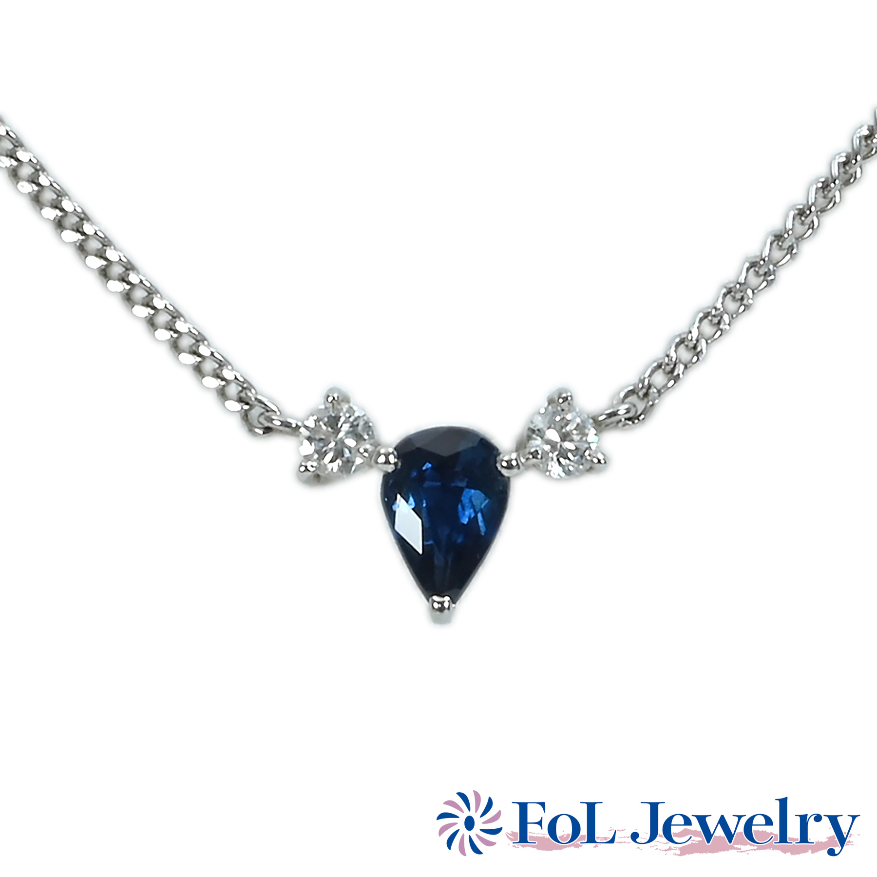 カラーサファイアペンダント K18WG CS10.80ct D0.12ct