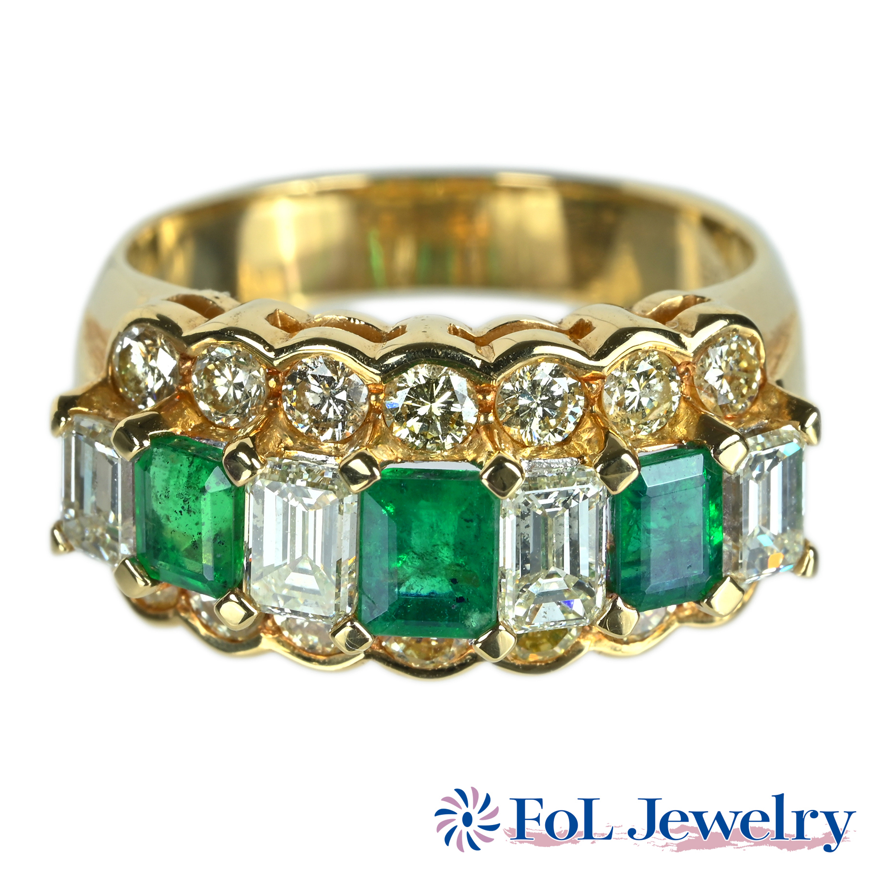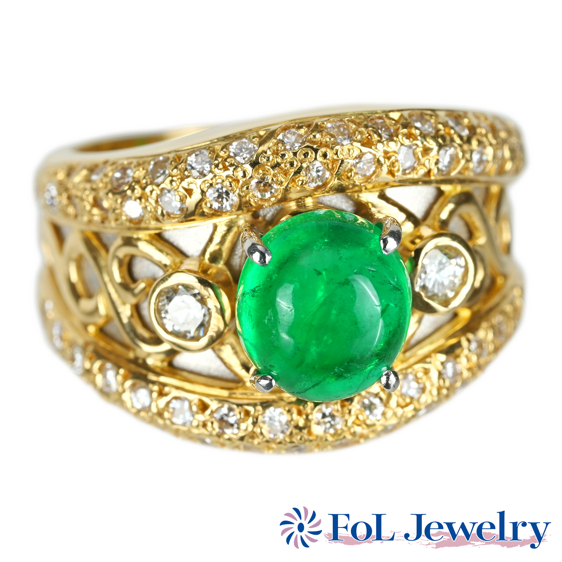 エメラルドリング K18YG E1.03ct D2.45ct