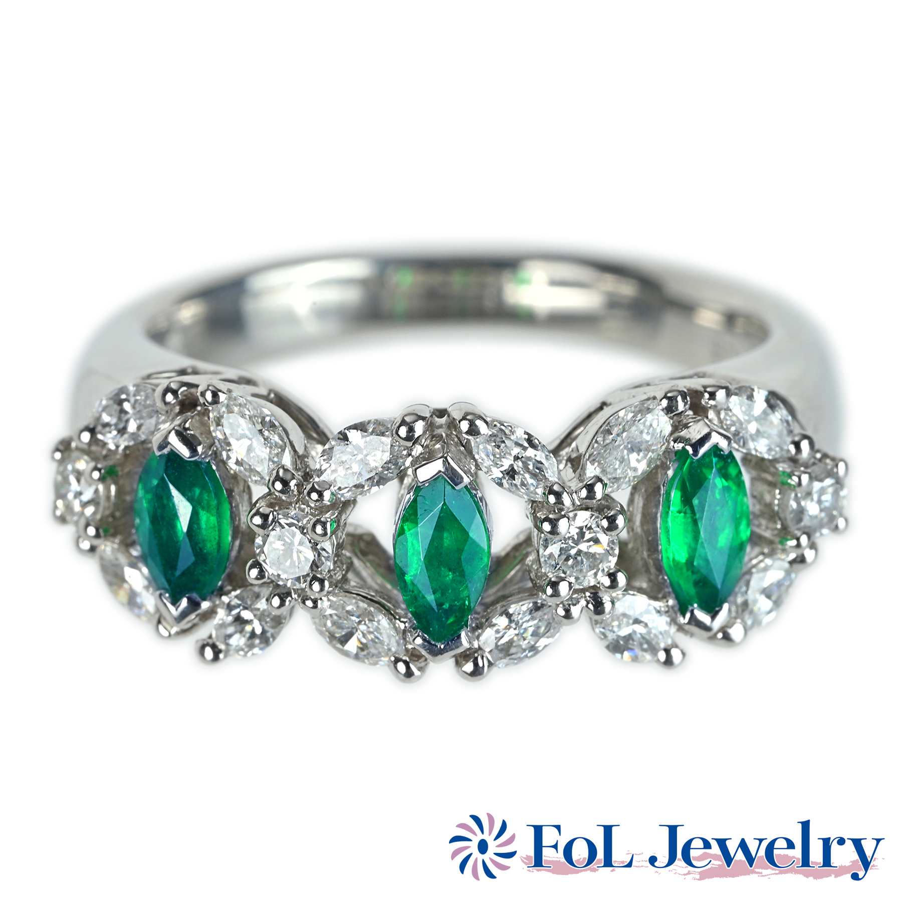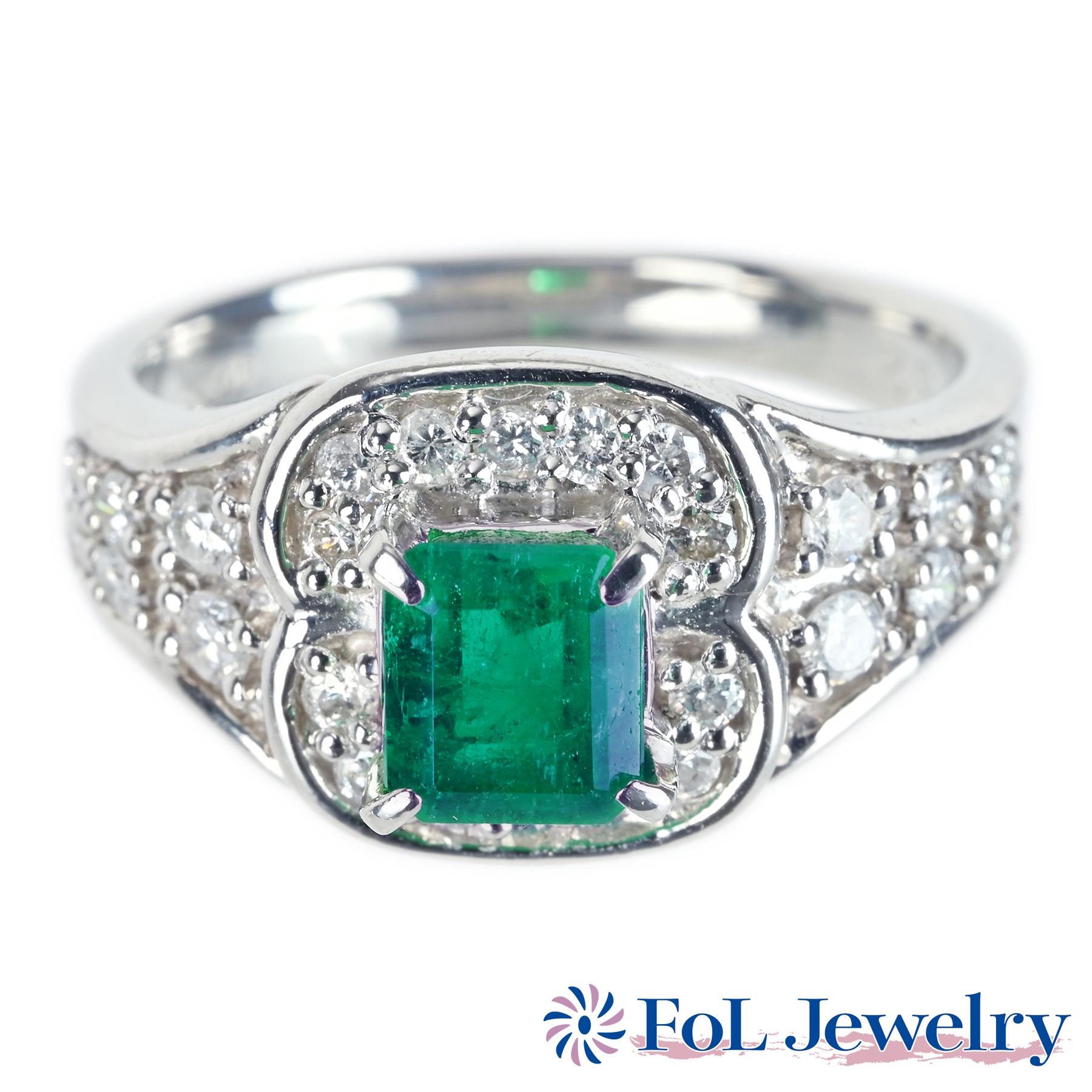 エメラルドリング PT900 E0.45ct D0.70ct