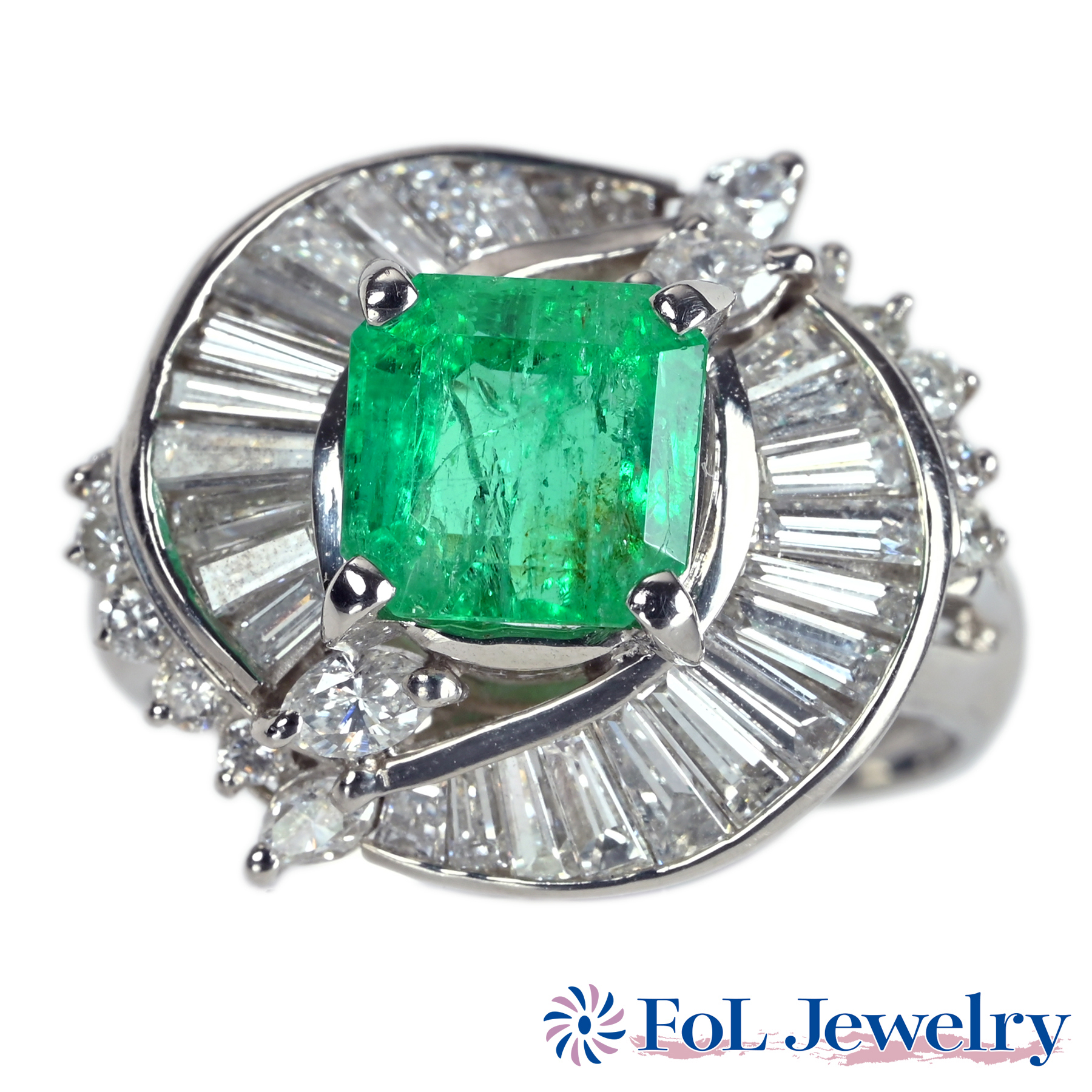 コロンビア産エメラルドリング PT900 E2.61ct D1.13ct