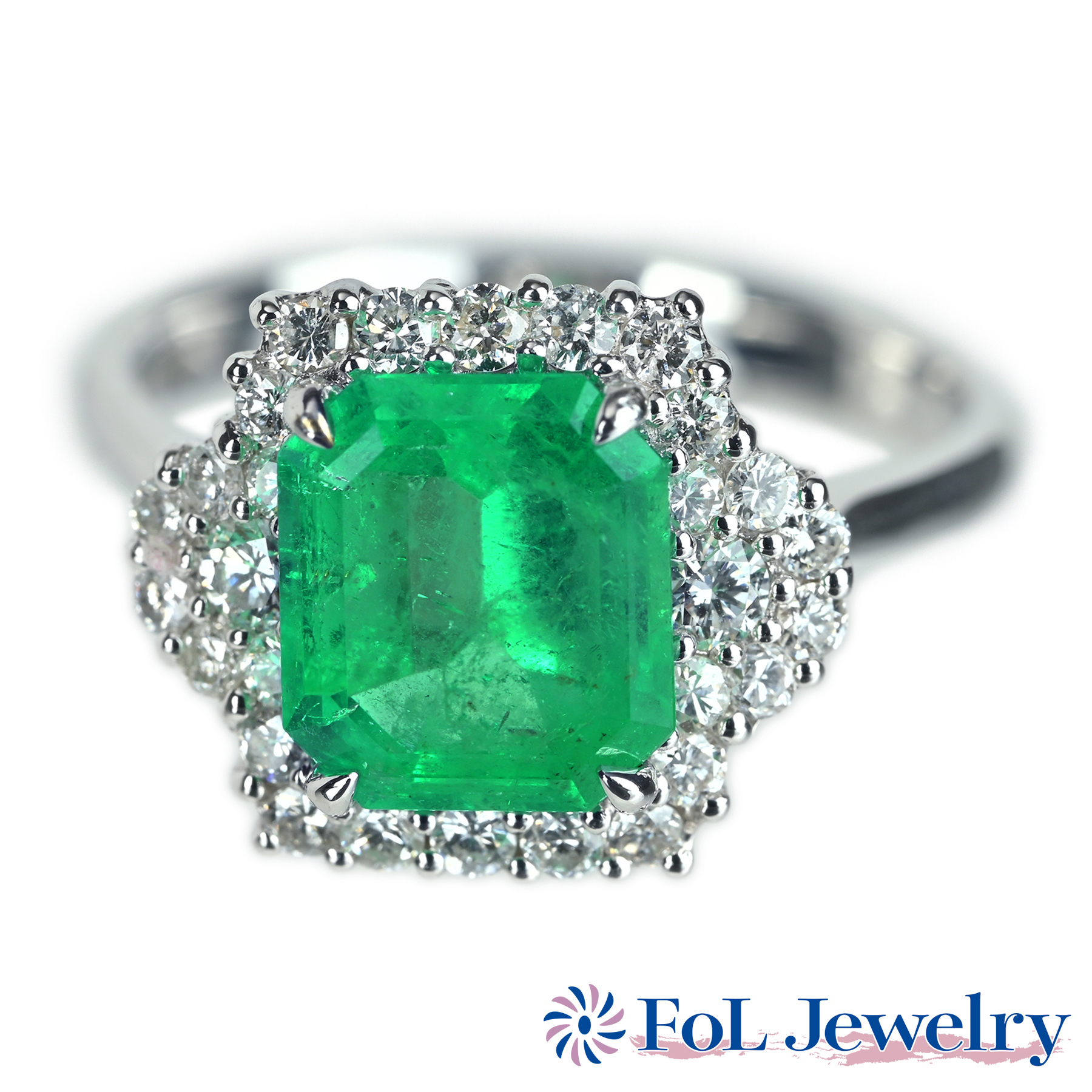 エメラルドリング K18WG E2.275ct D0.29ct