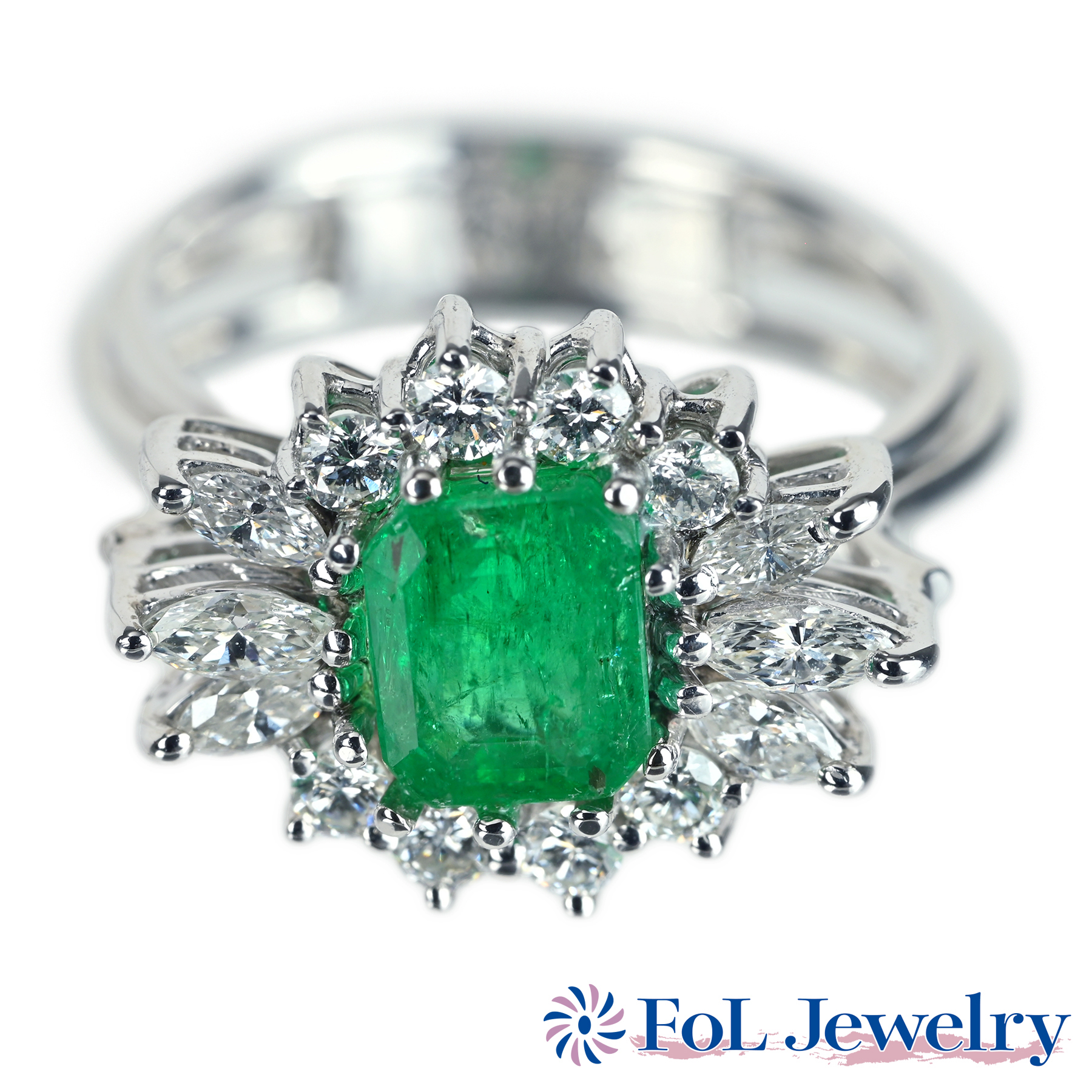 エメラルドリング PT900 E0.91ct D0.52ct