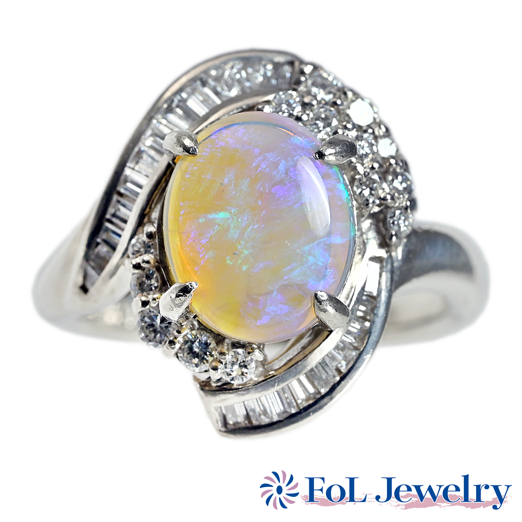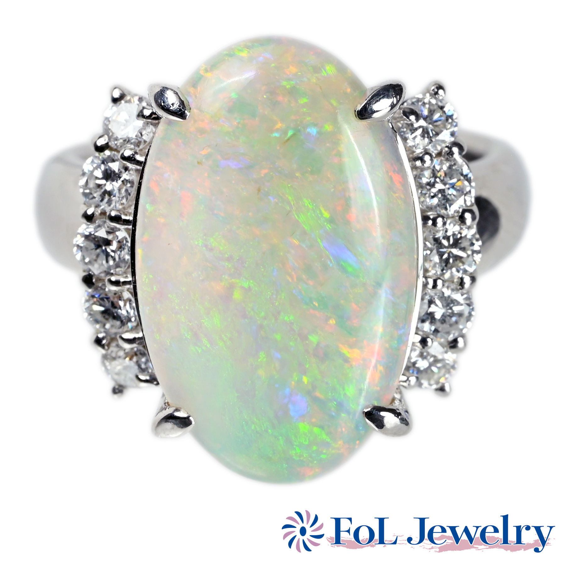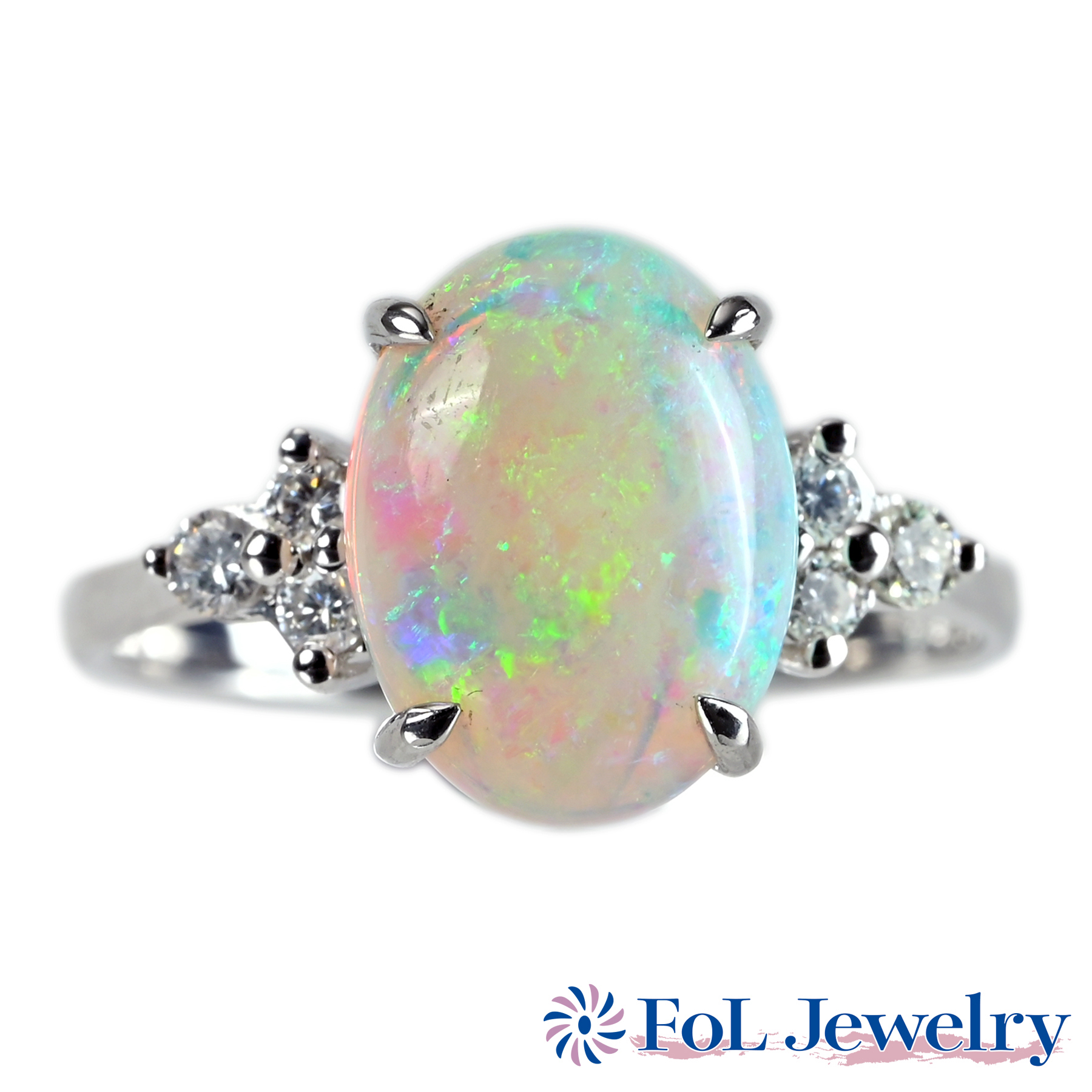 ホワイトオパールリング PT900 OP4.30ct D0.59ct