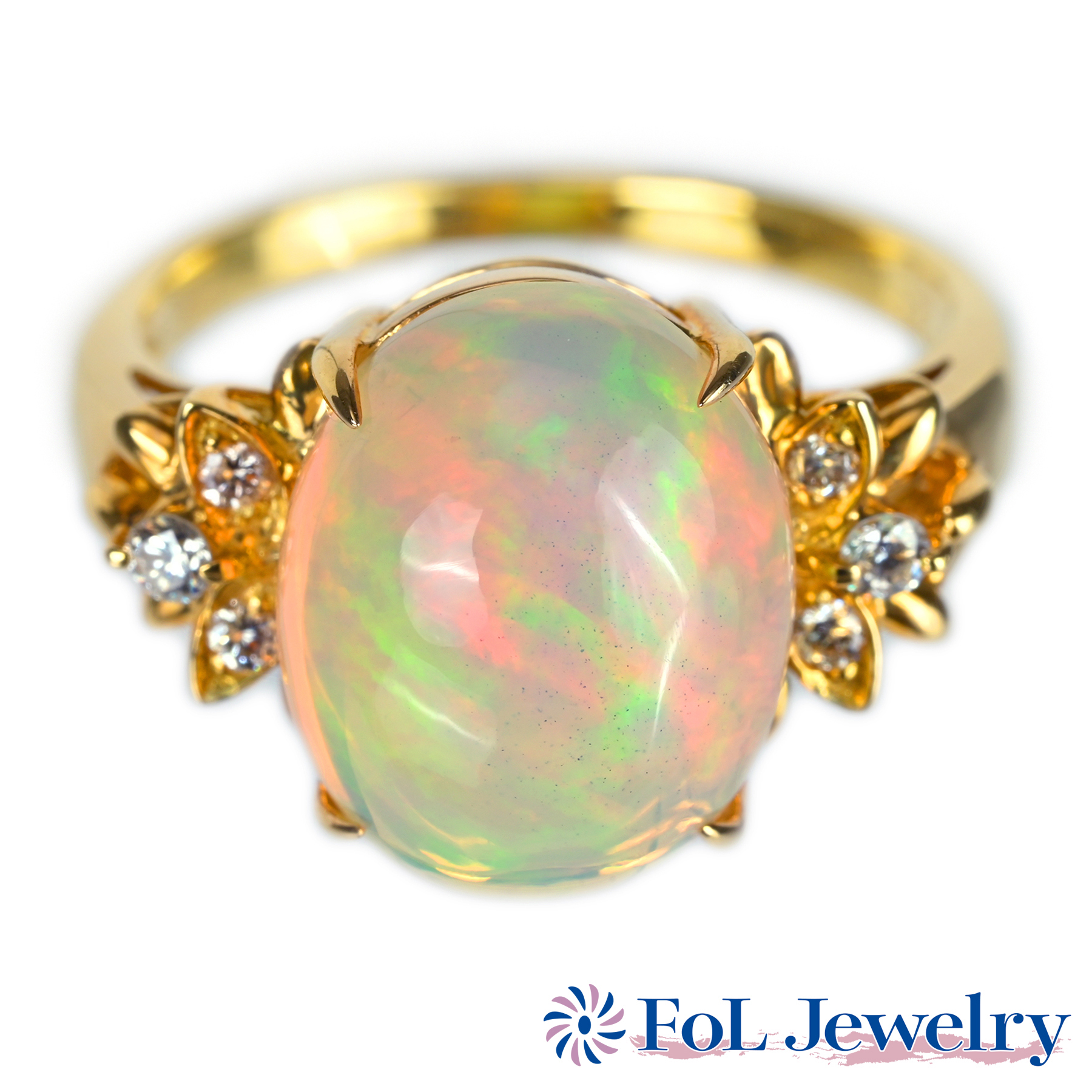 メキシコオパールリング K18YG MEXICO OPAL OP5.00ct D0.14ct