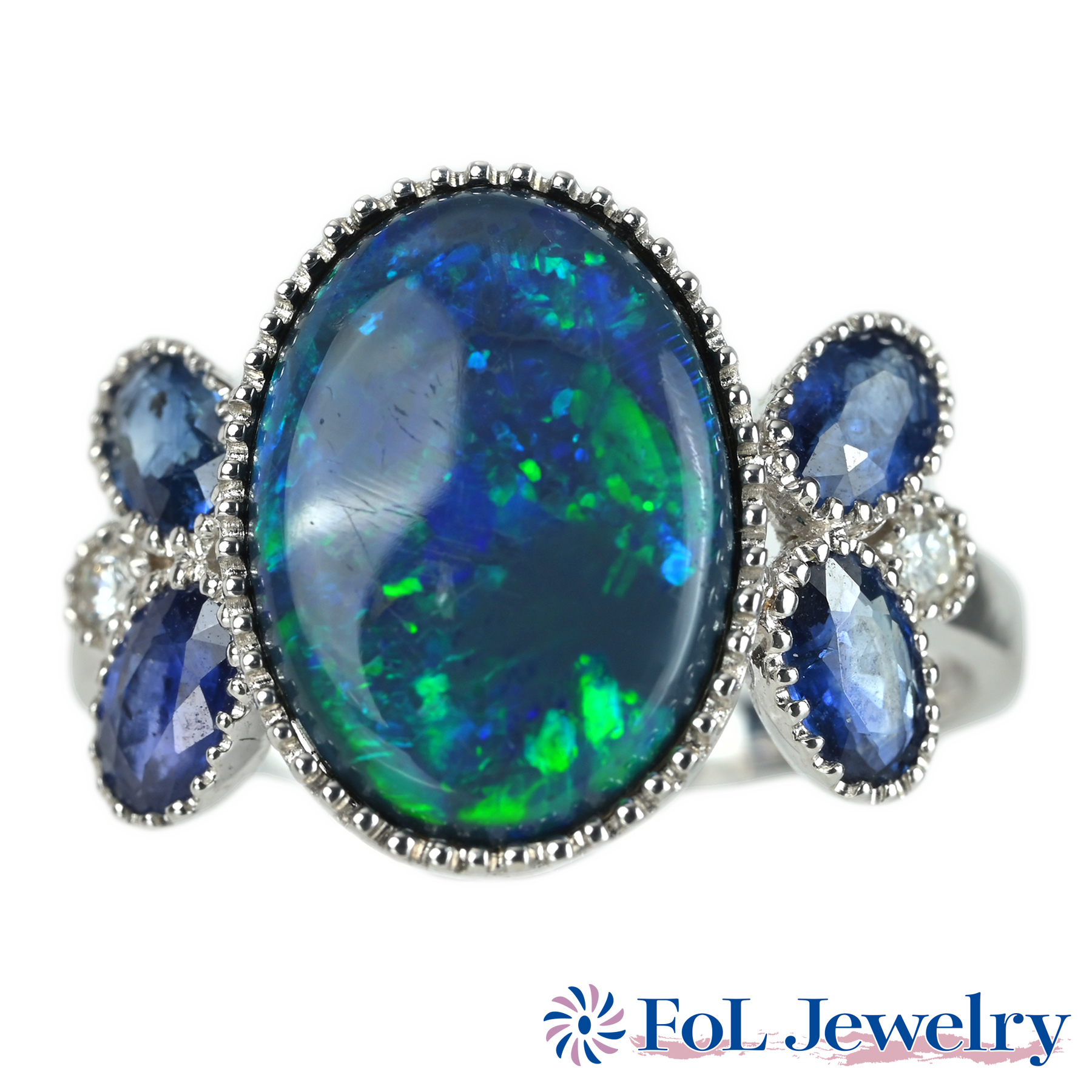 ブラックオパールリング PT900 BLACK OPAL BO2.81 D1.30ct