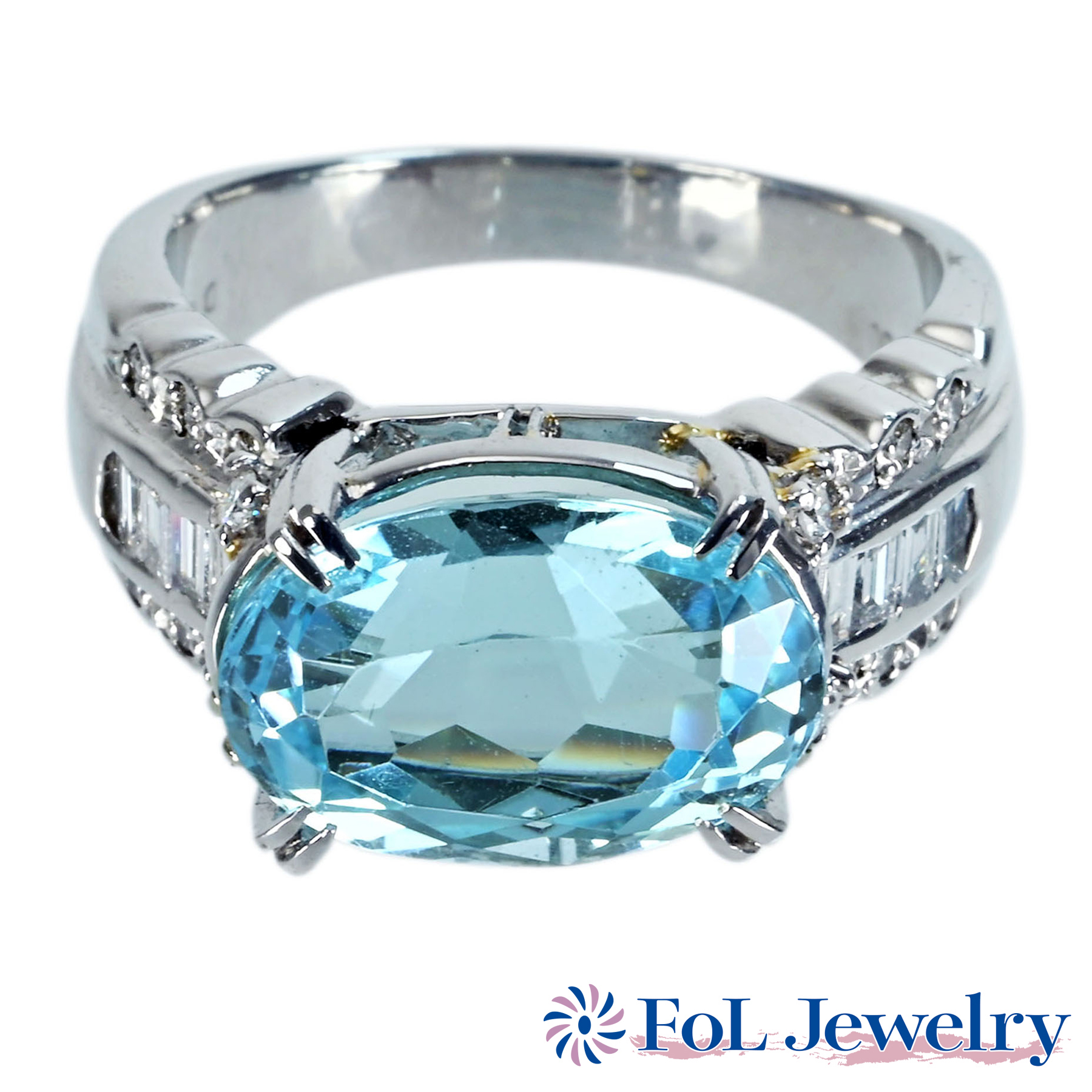 ブルートパーズリング PT900 TP-BL6.56ct D0.84ct