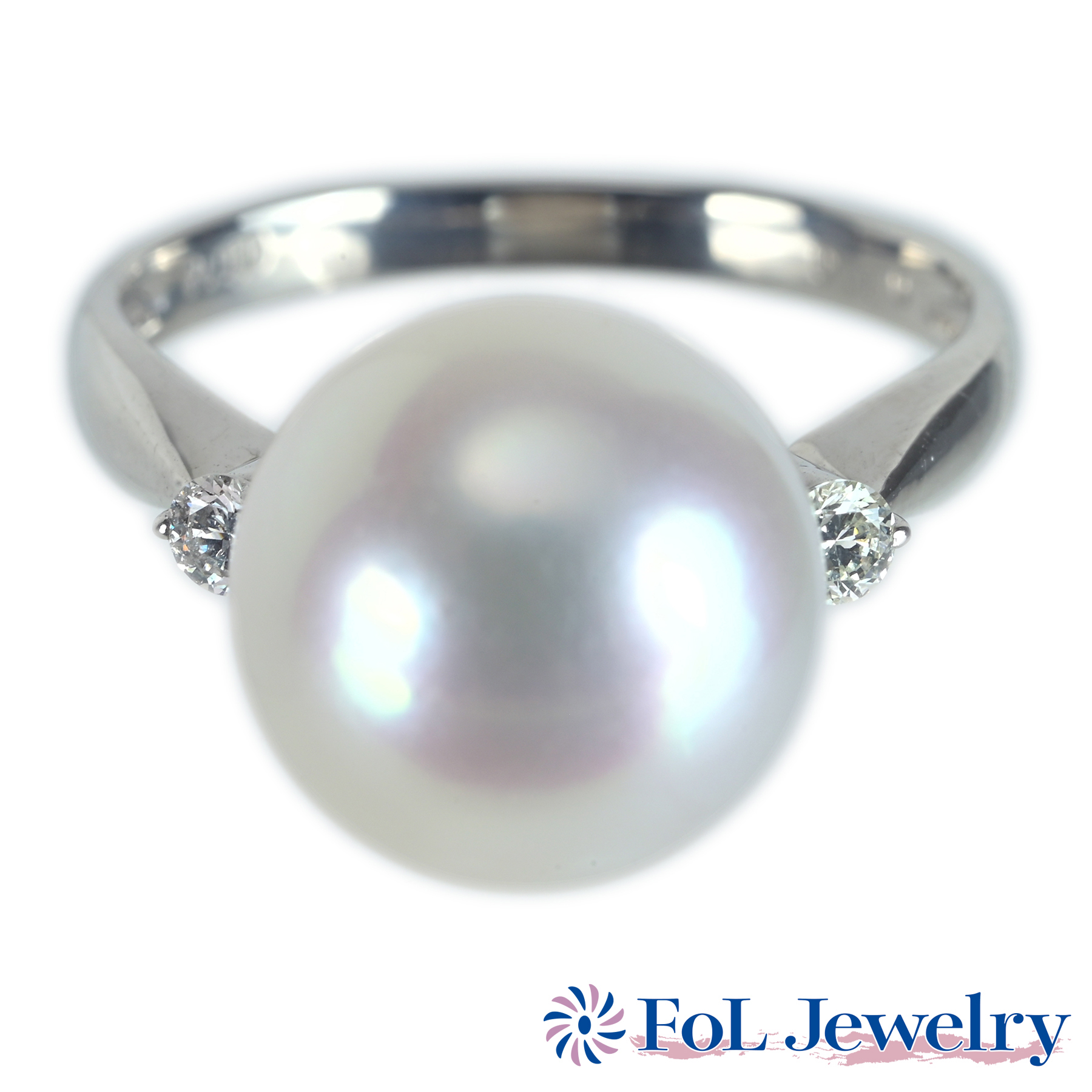 南洋白蝶パールリング PT900 11.3mm D0.10ct