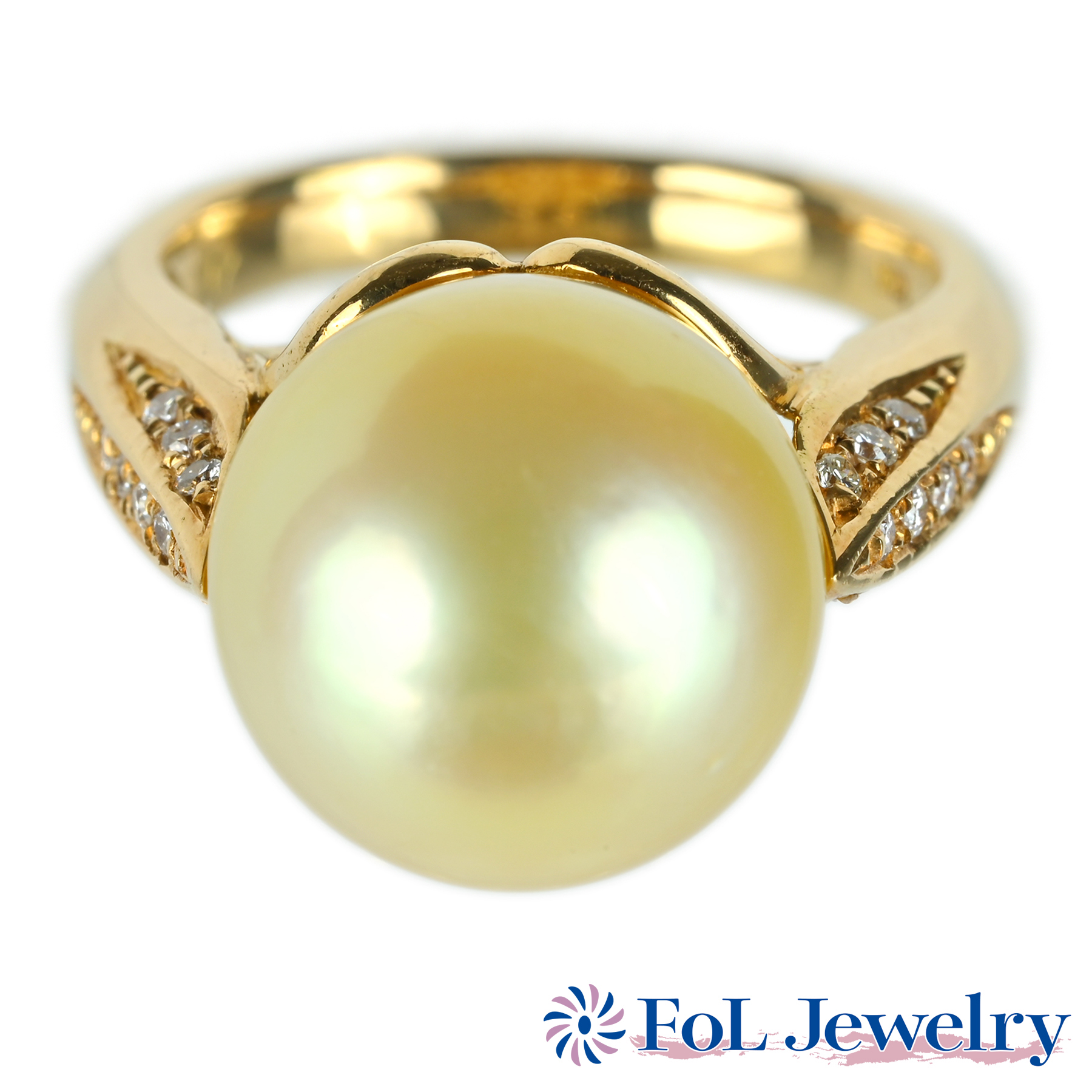 ゴールデンパールリング K18YG 13.1mm D0.17ct