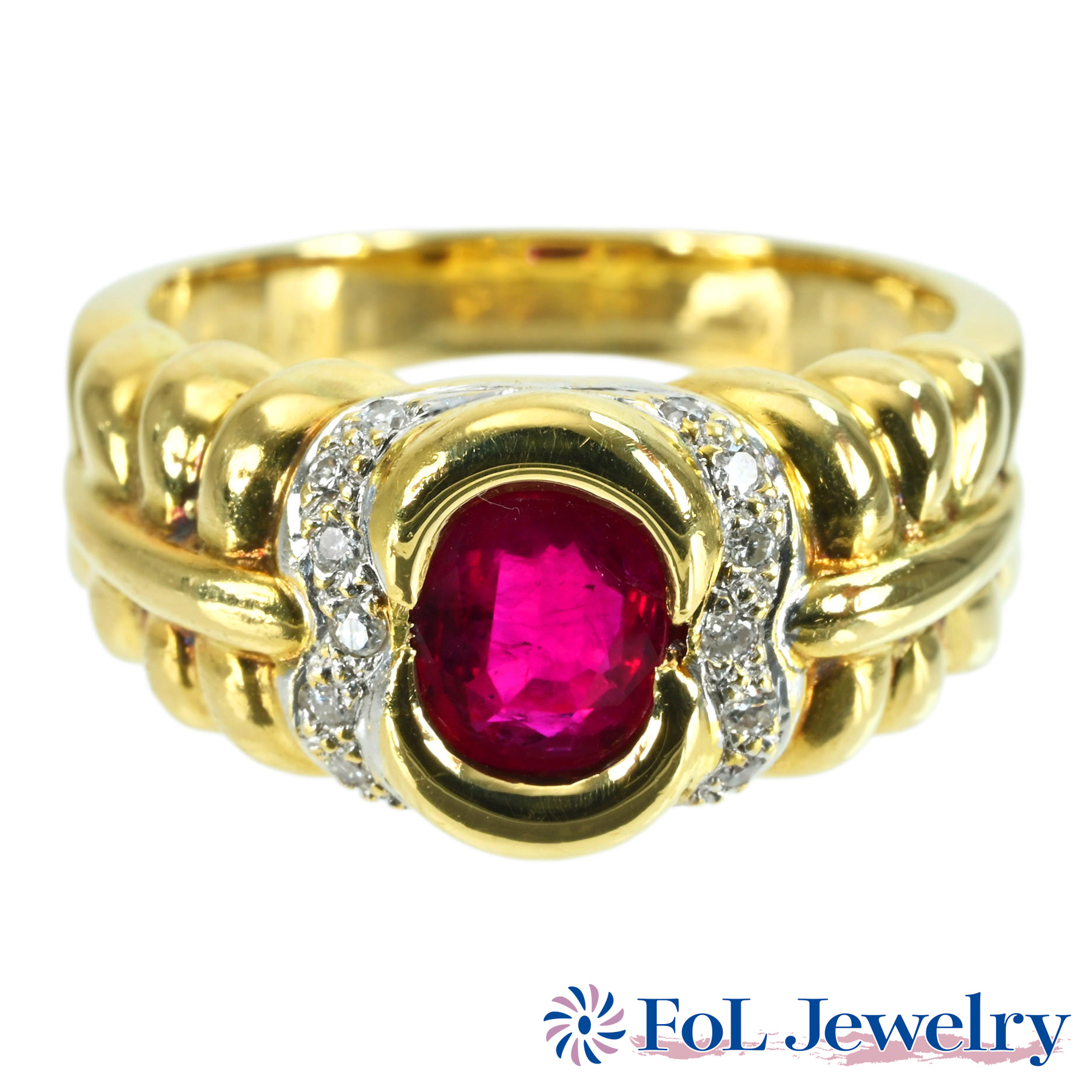 ルビーリング K18YG R0.69ct D1.10ct