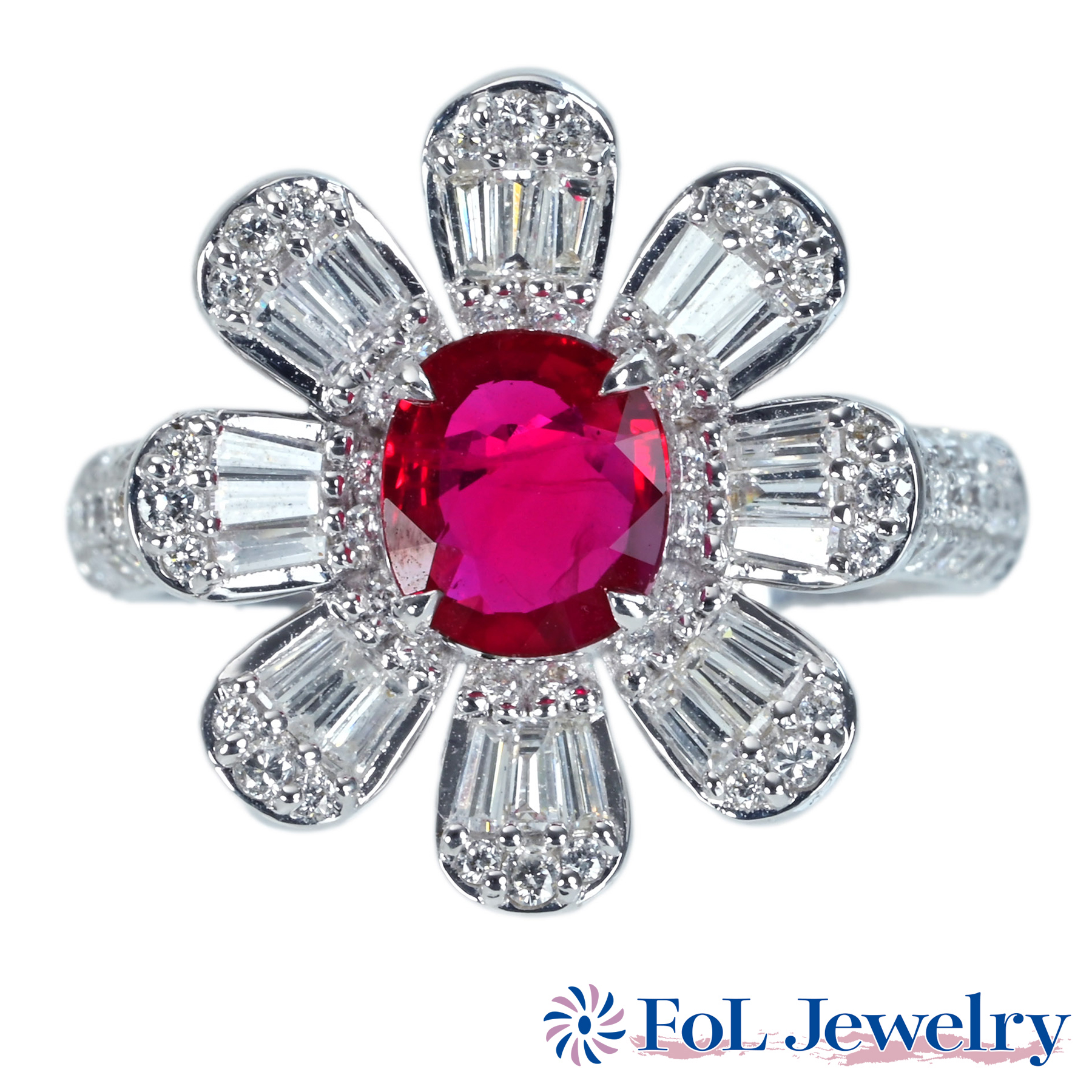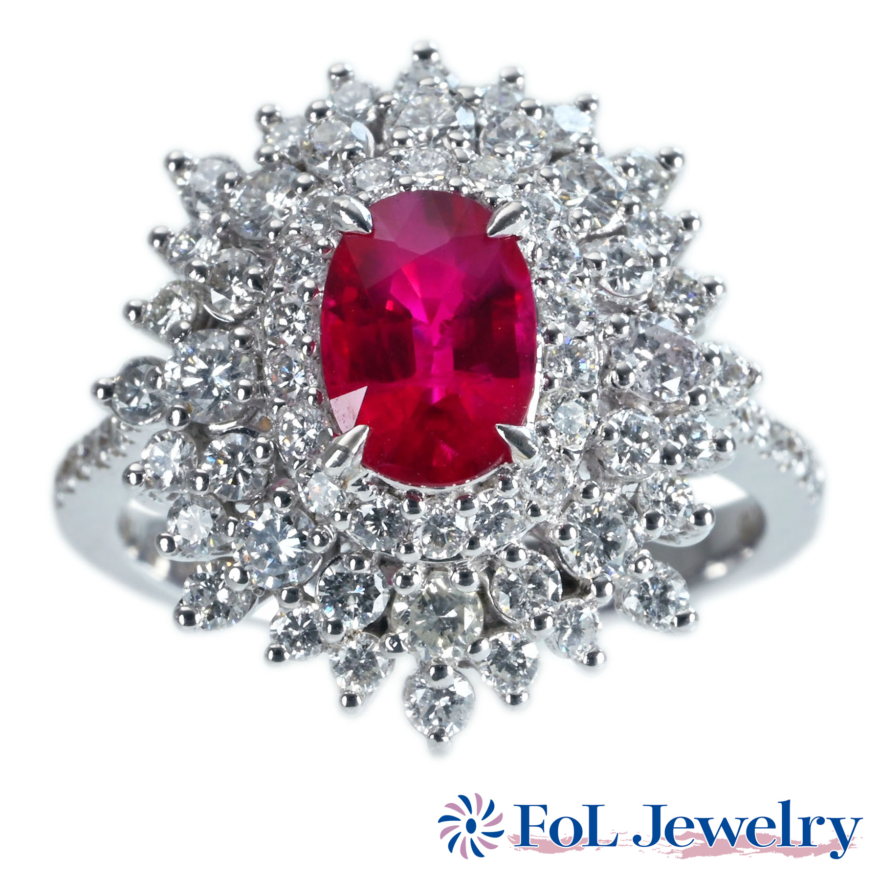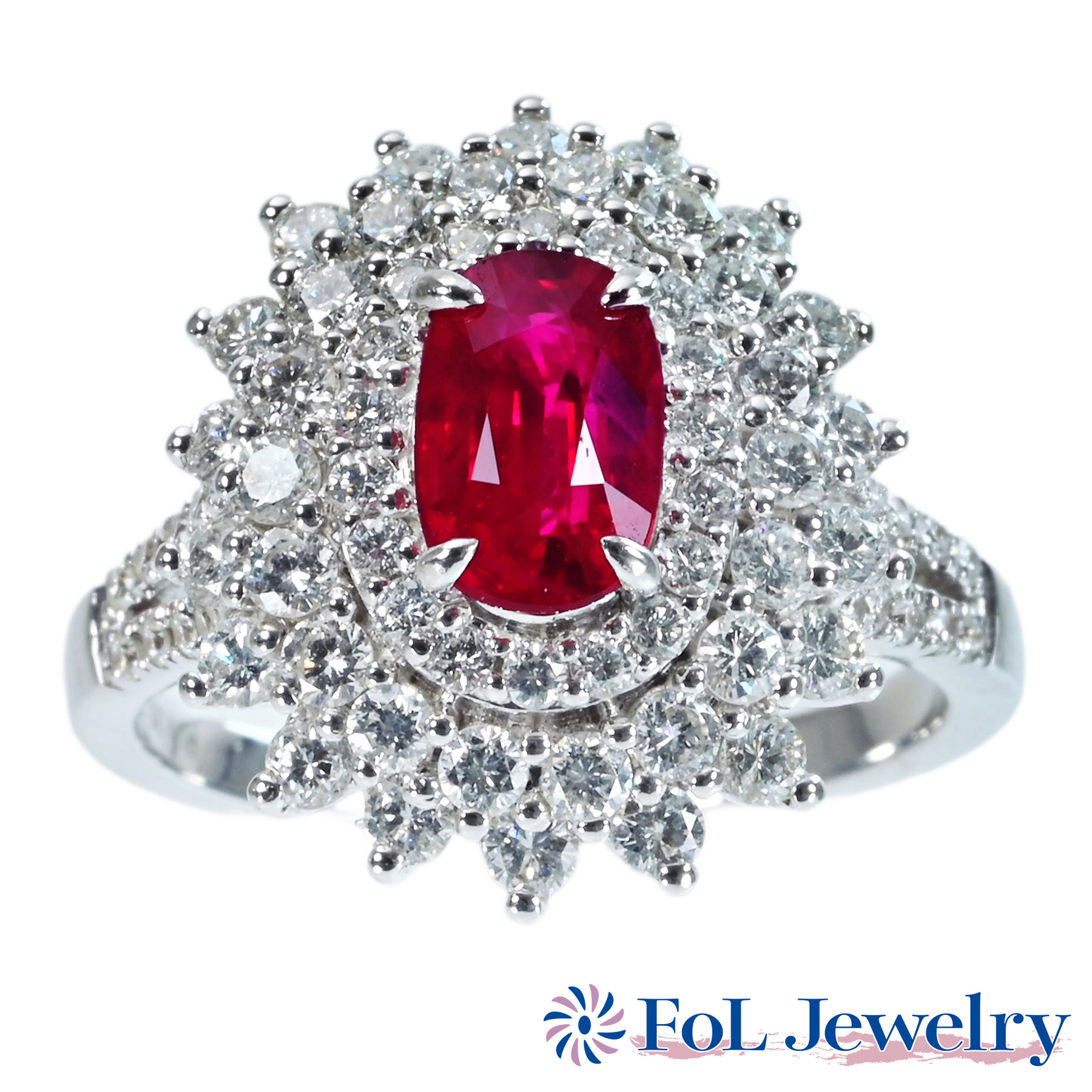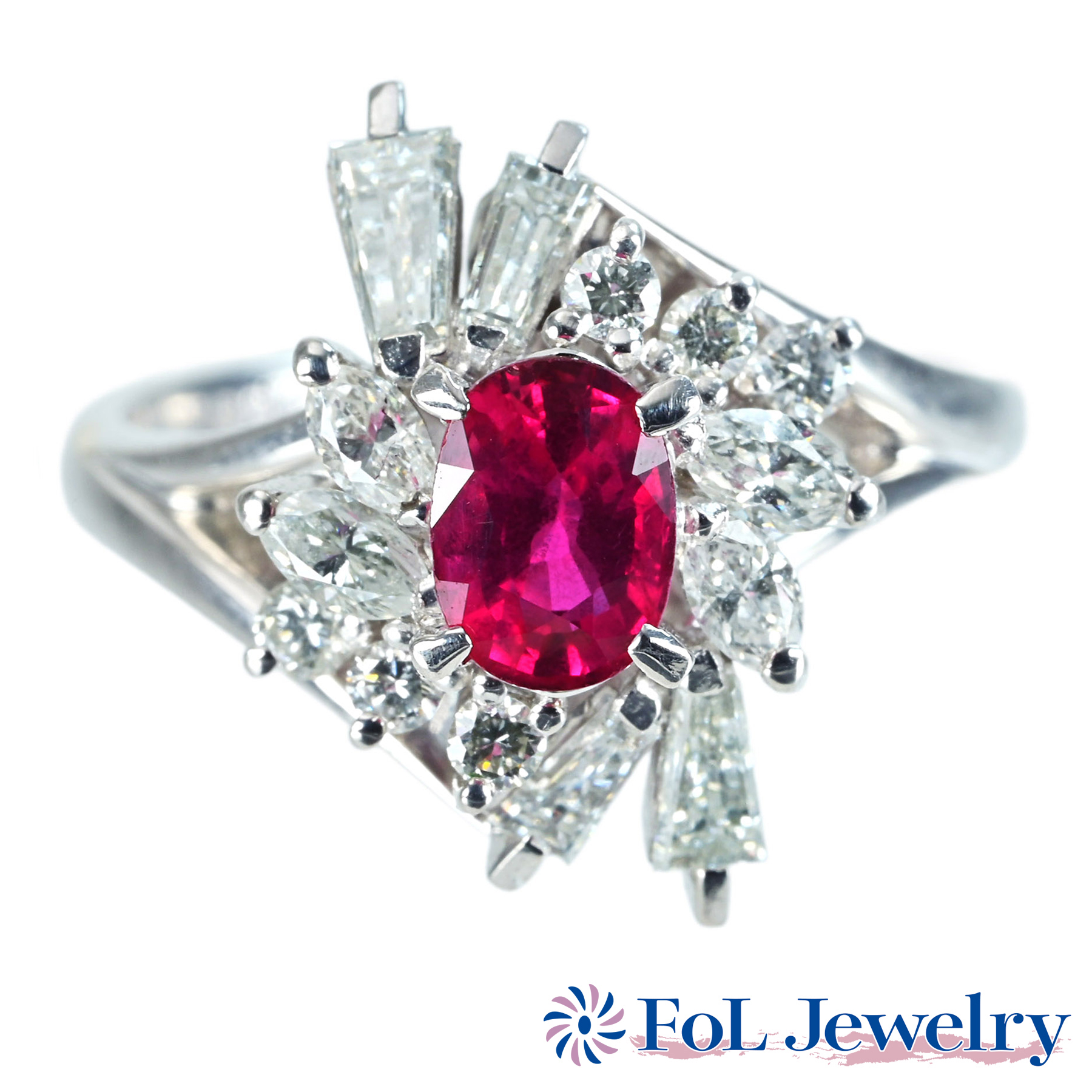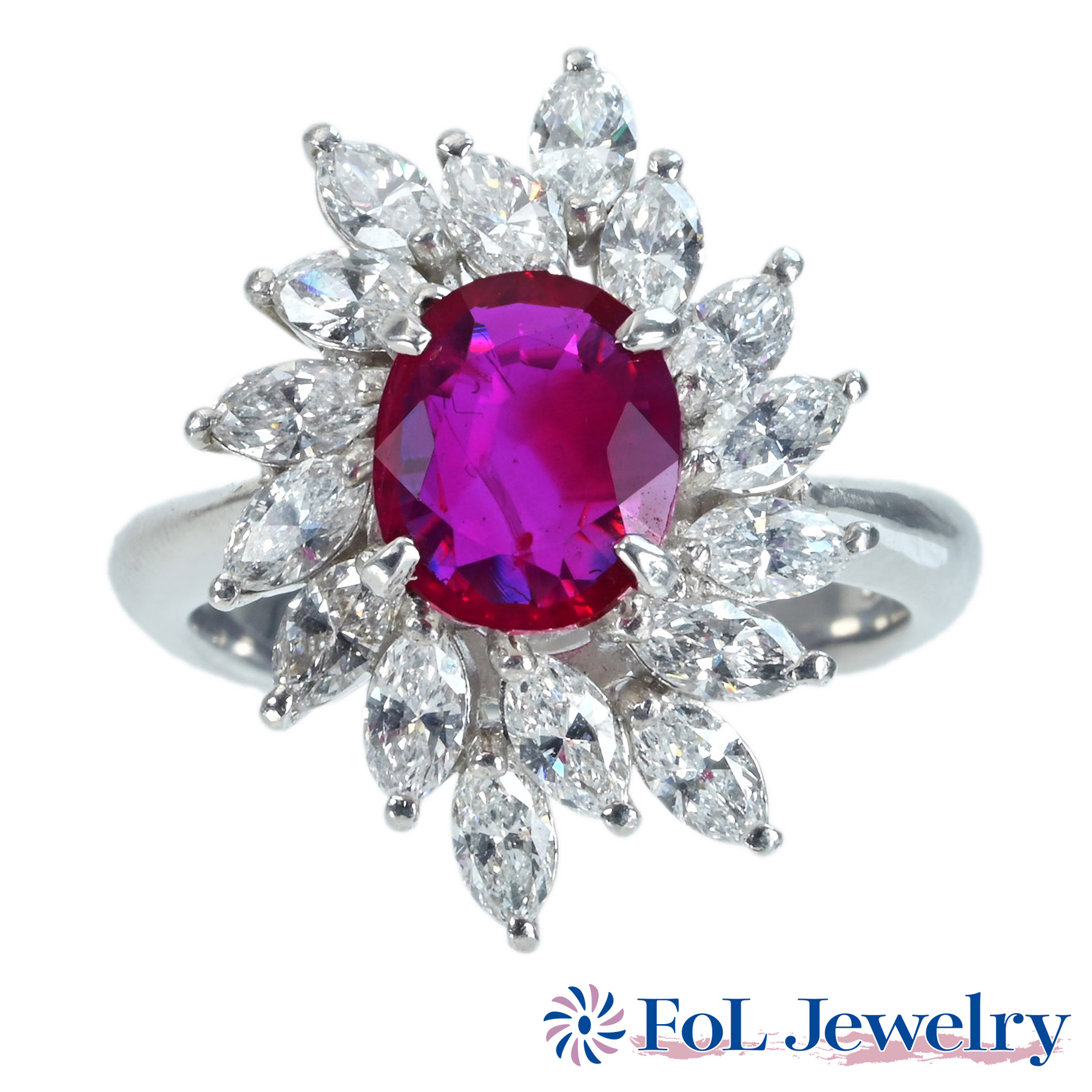 ミャンマー産ルビーリング “Queen” PT950 R1.384ct D0.79ct