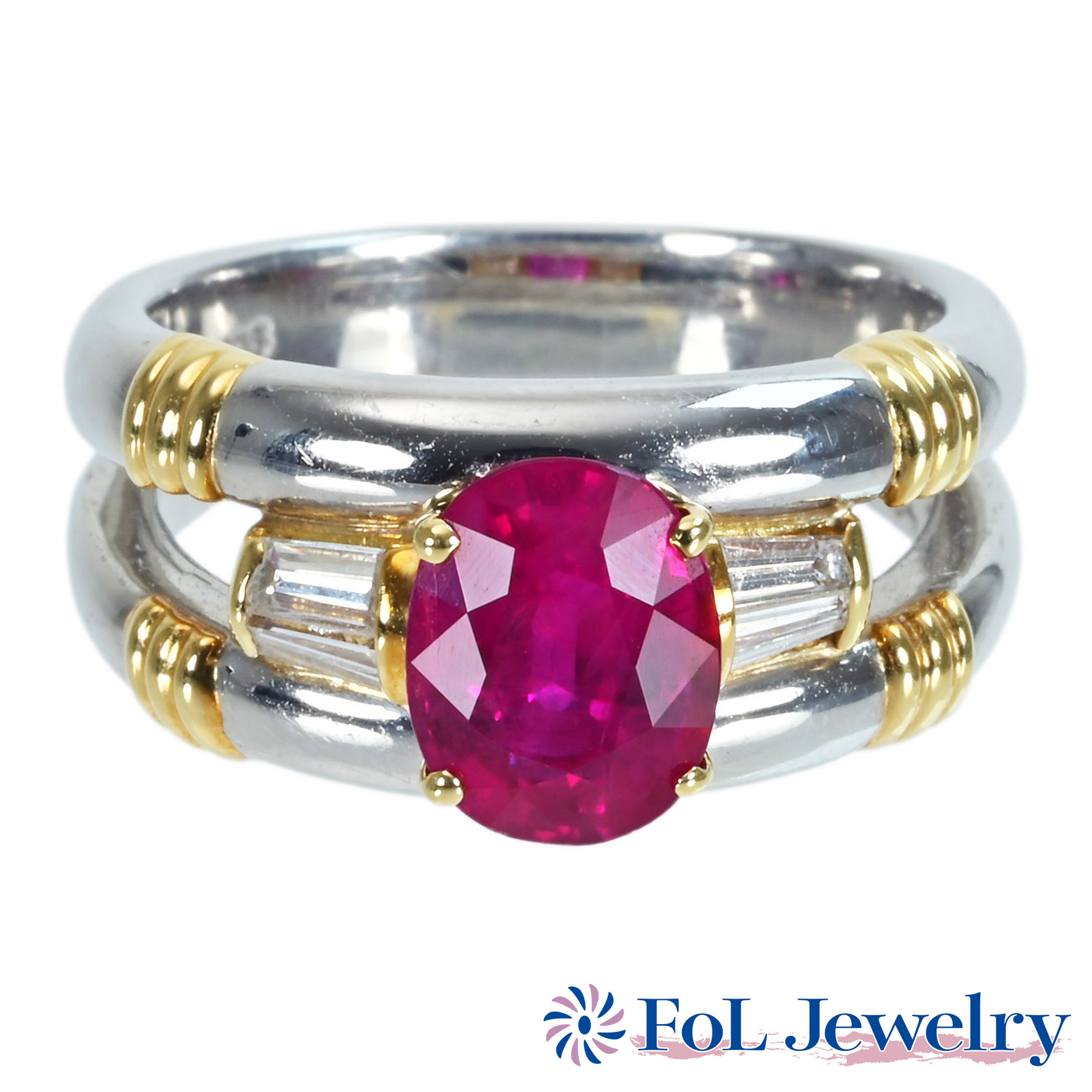 ミャンマー産ルビーリング PT900/K18YG R2.20ct D0.29ct