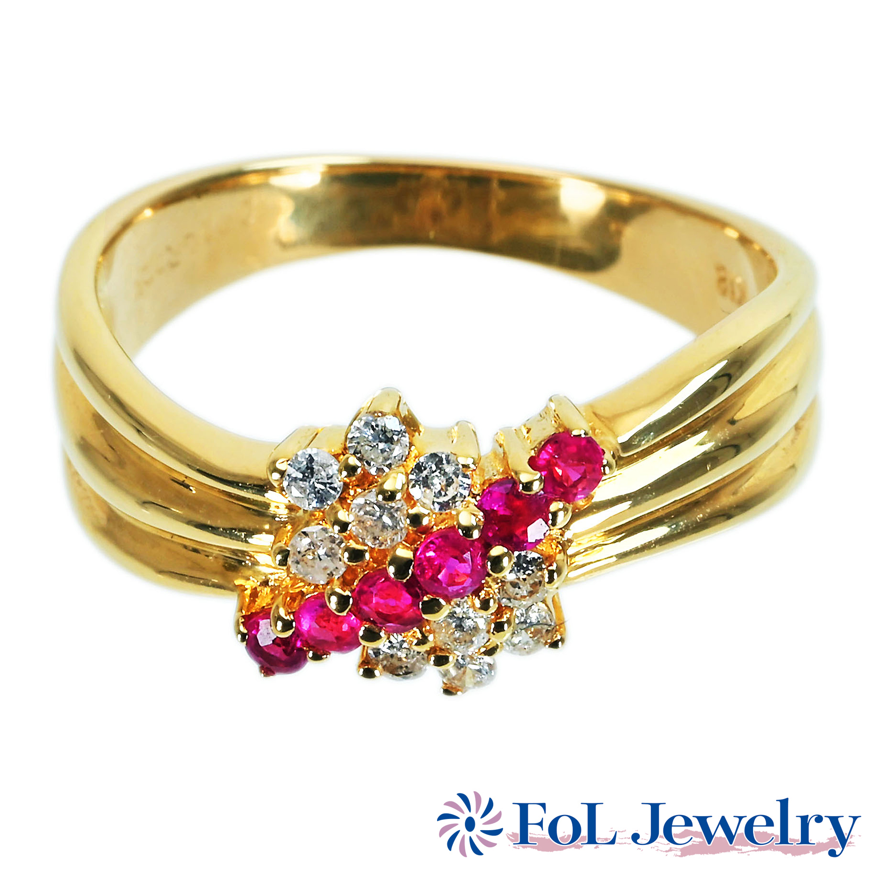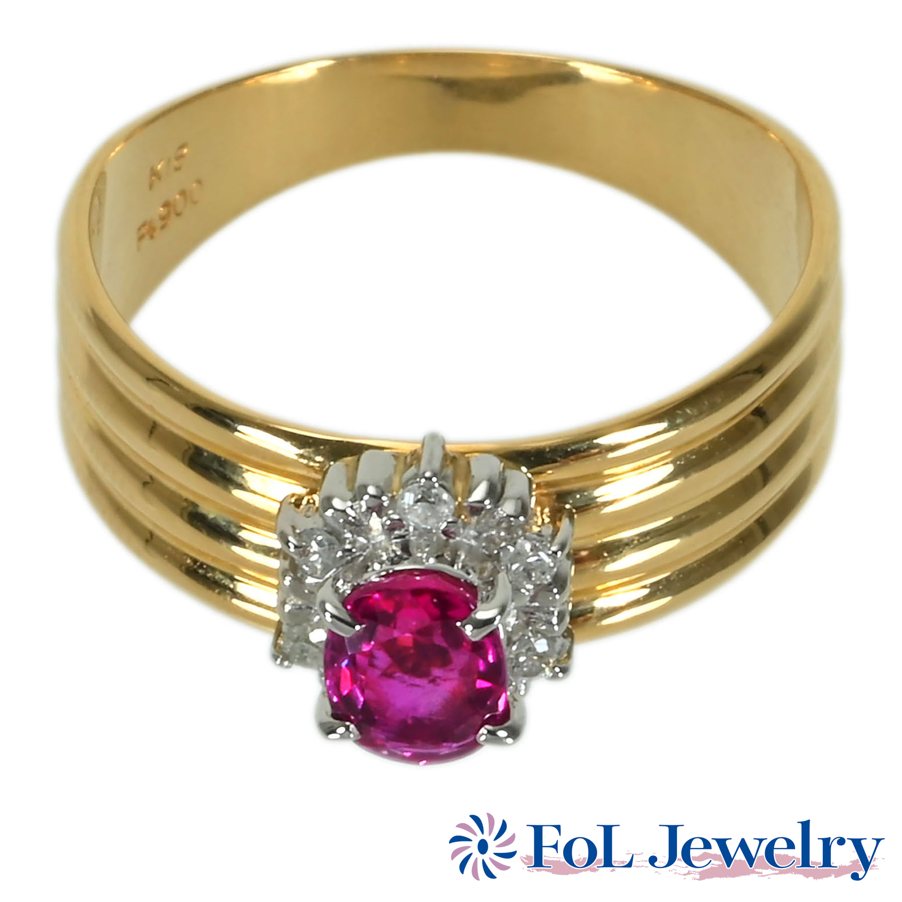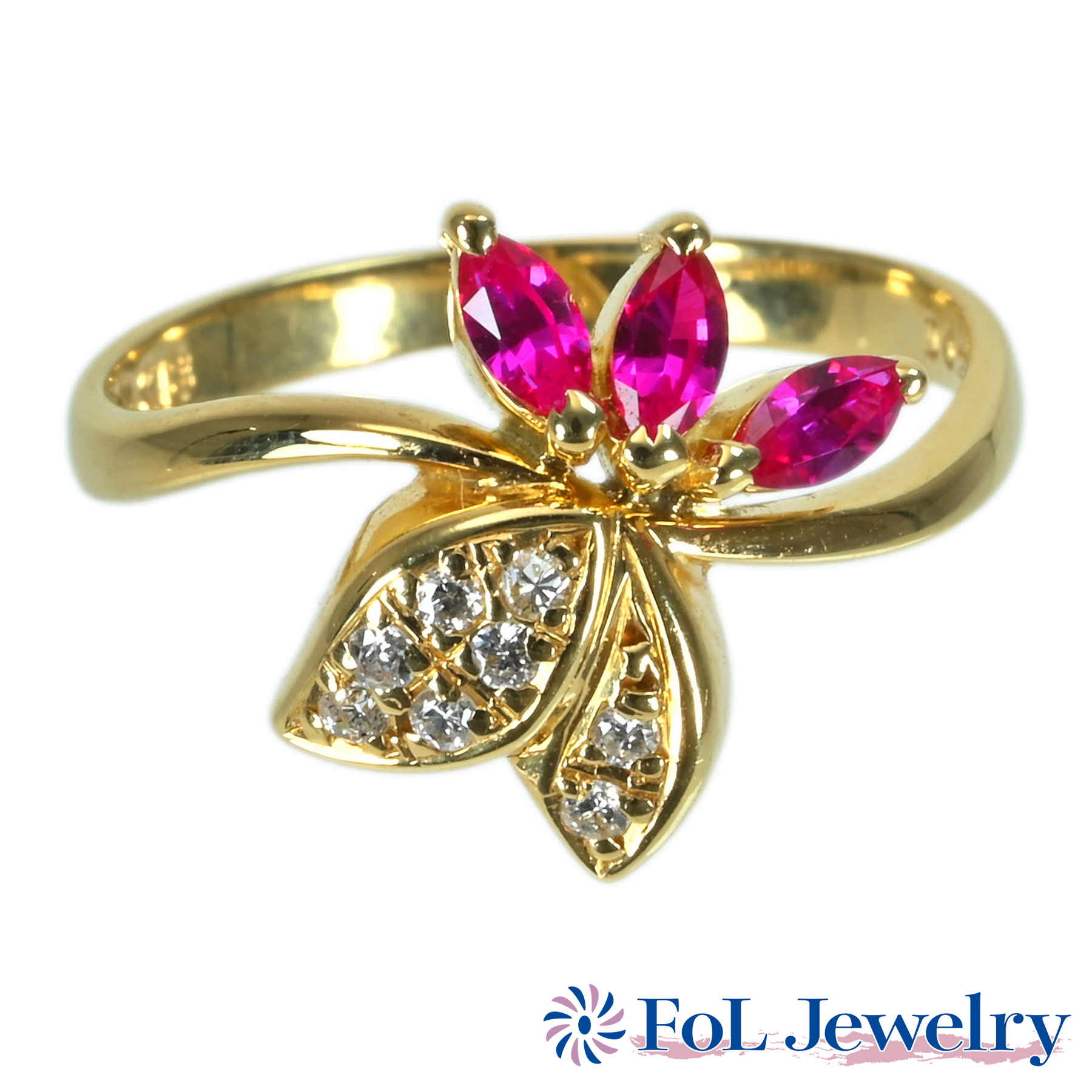 ルビーリング K18YG R0.21ct D0.16ct