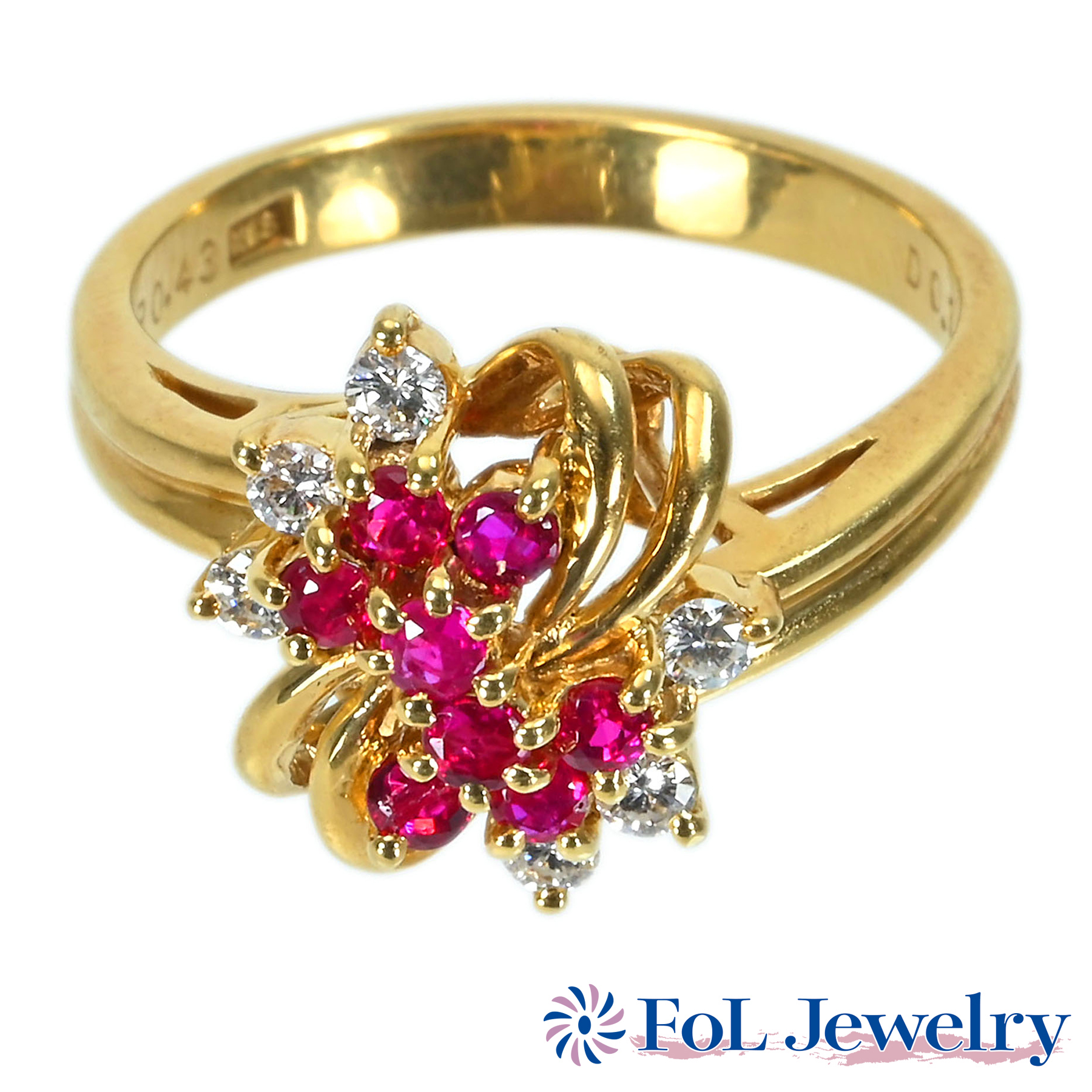 ルビーリング K18YG R0.43ct D0.18ct