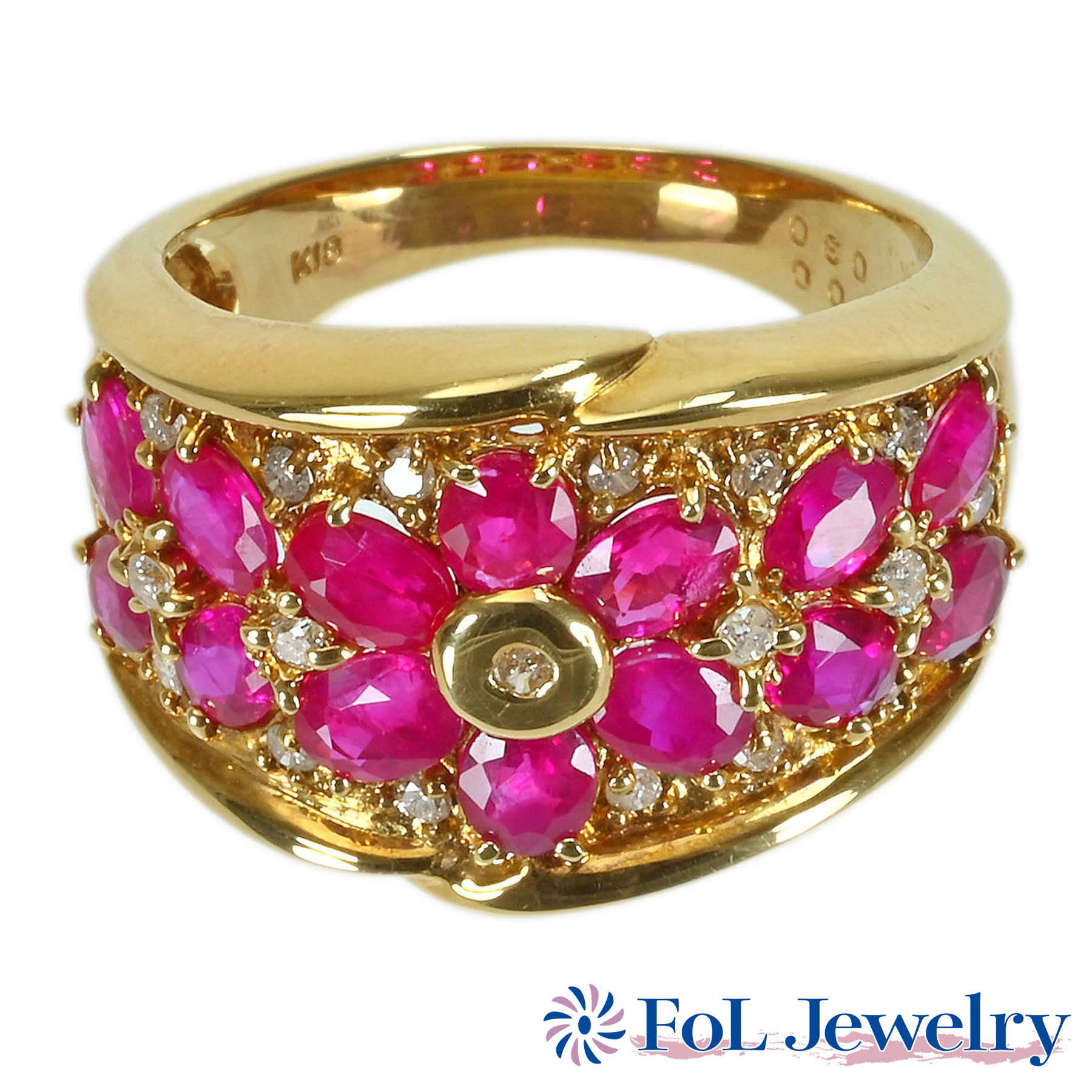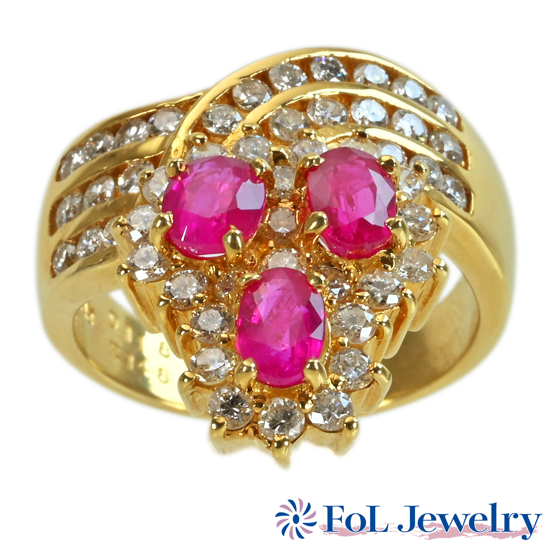 ルビーリング K18YG R3.00ct D0.30ct