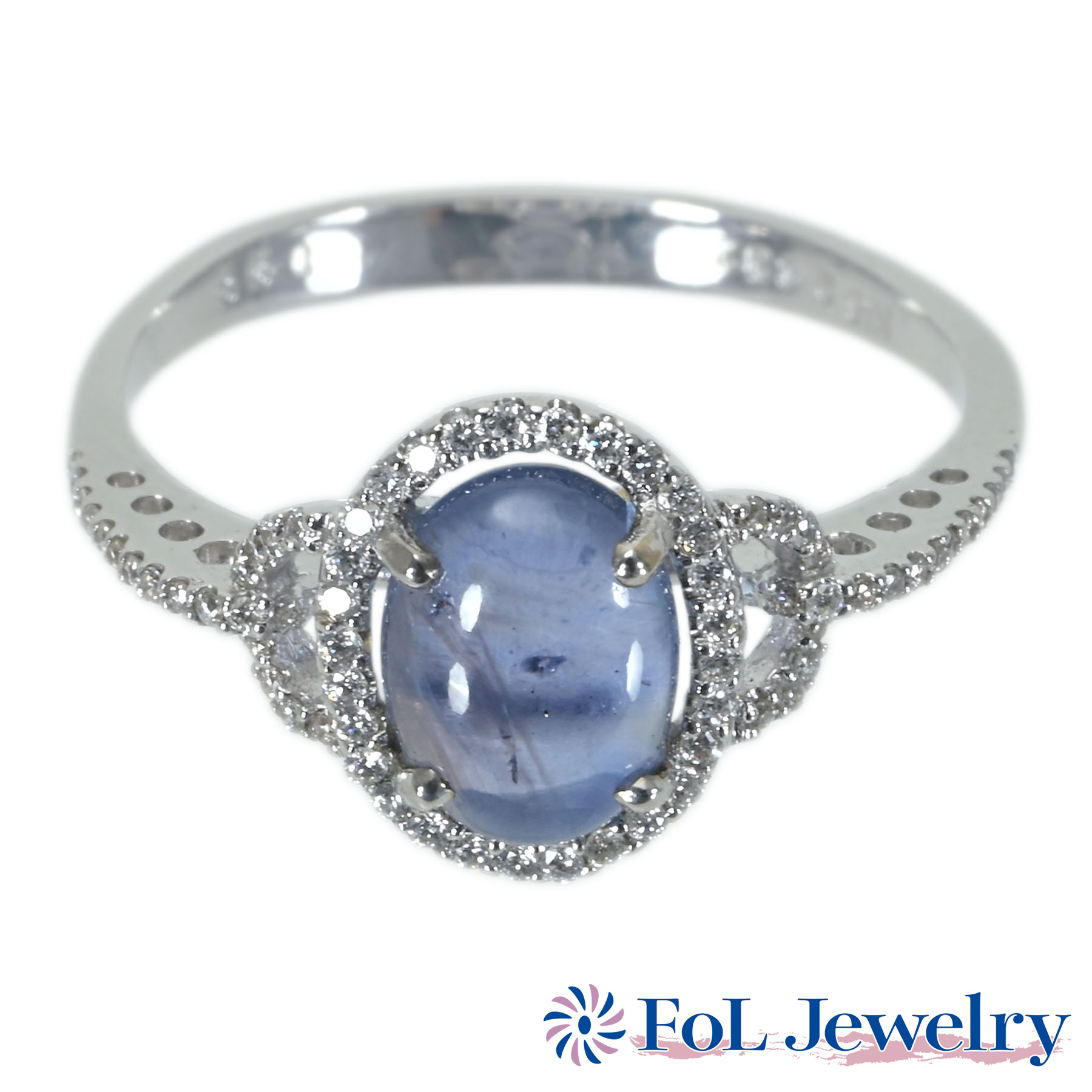 スターサファイアリング K18WG SS2.20ct D0.30ct