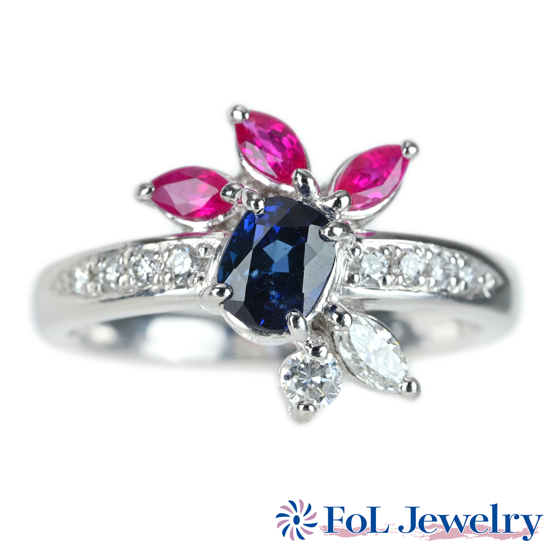 サファイアリング PT900 S0.73ct R0.40ct D0.247ct