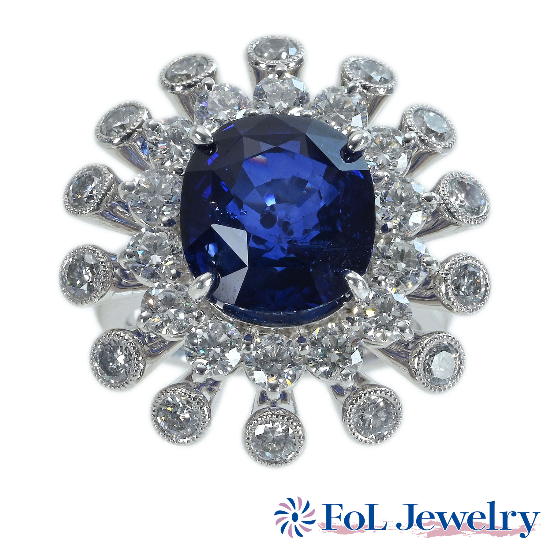 スリランカ産サファイアリング K18WG S7.24ct D1.50ct
