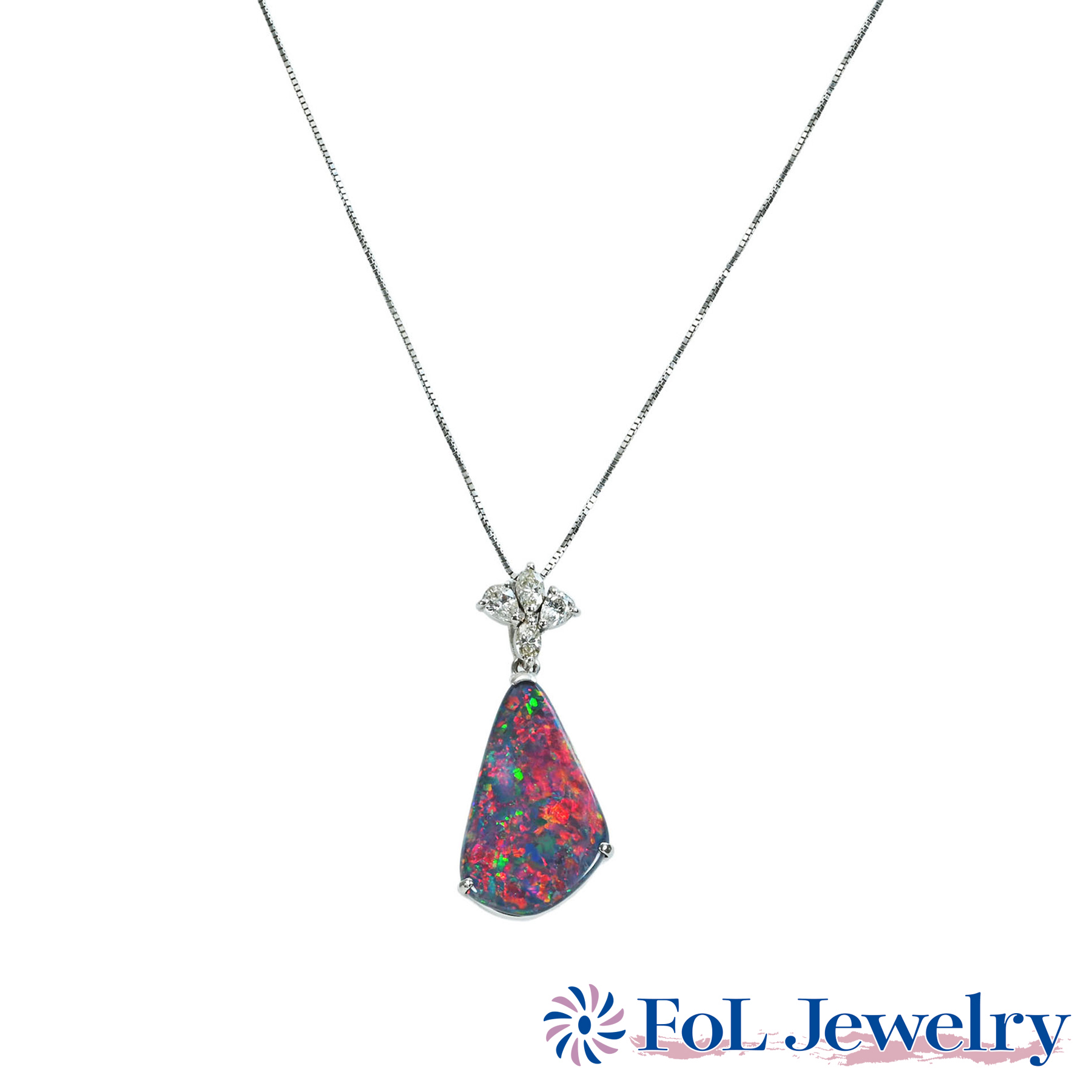 ブラックオパールペンダント K18WG/PT900 BO9.00ct D0.60ct
