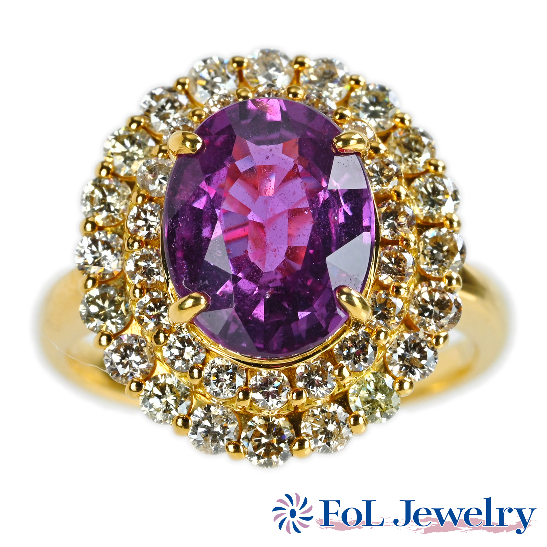 マダガスカル産パープルサファイアリング K18YG S3.93ct D1.04ct