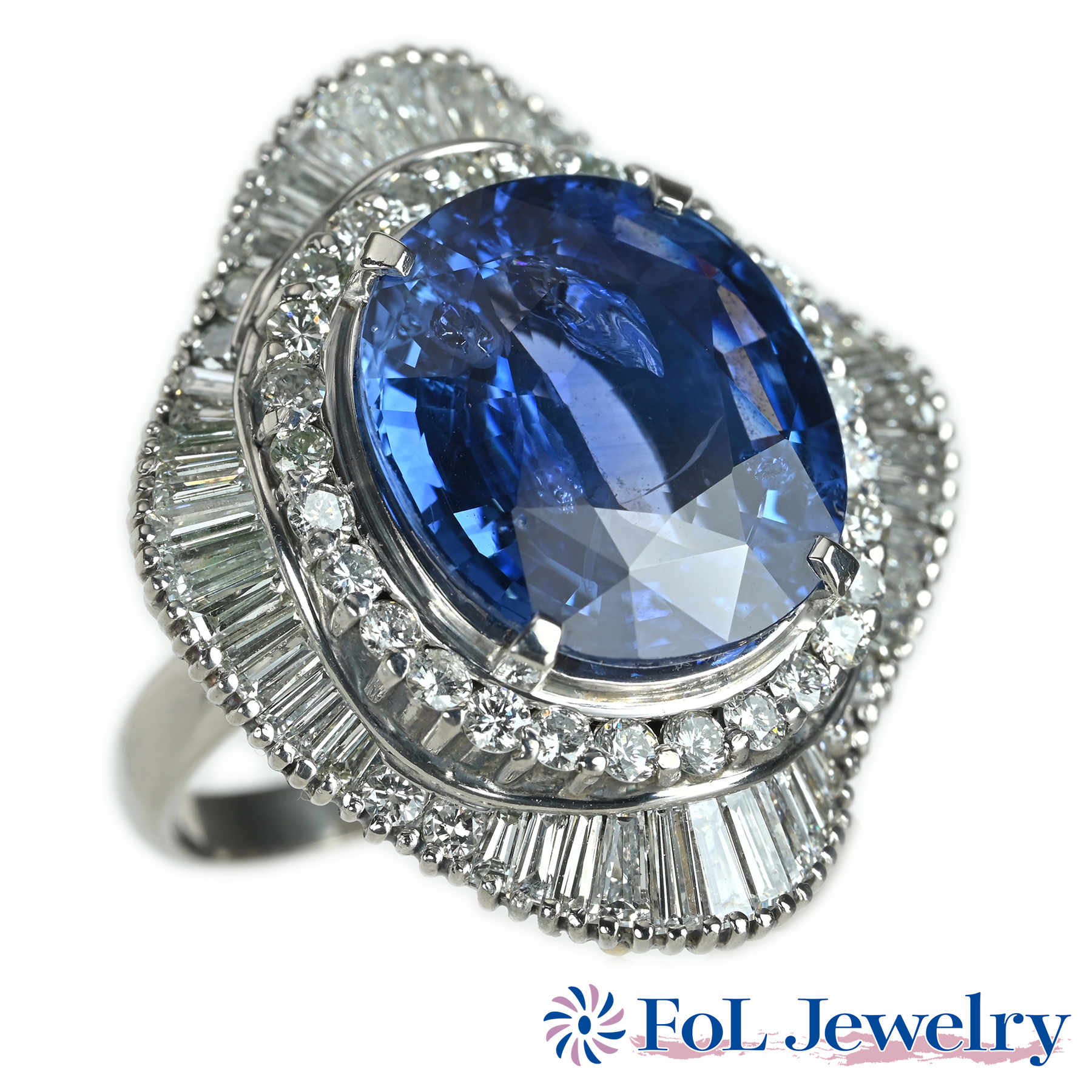 スリランカ産サファイアリング PT900 S14.79ct D3.37ct