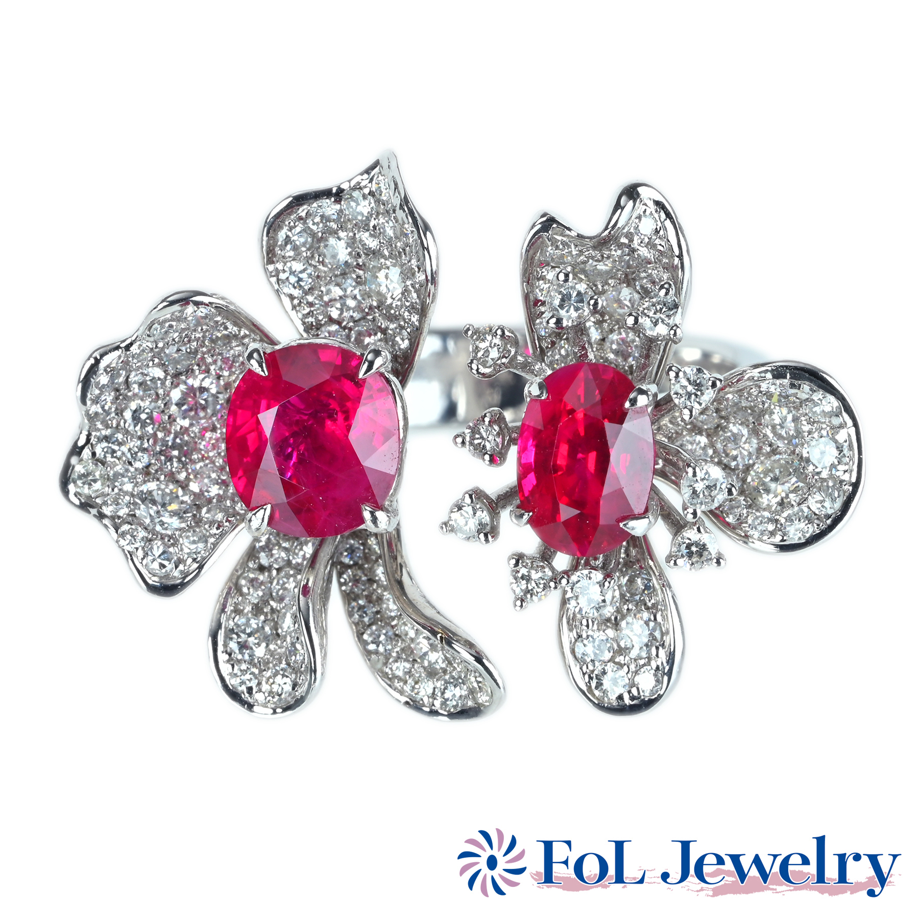 ミャンマー産ルビーリング K18WG R1.34ct R1.15ct D1.30ct