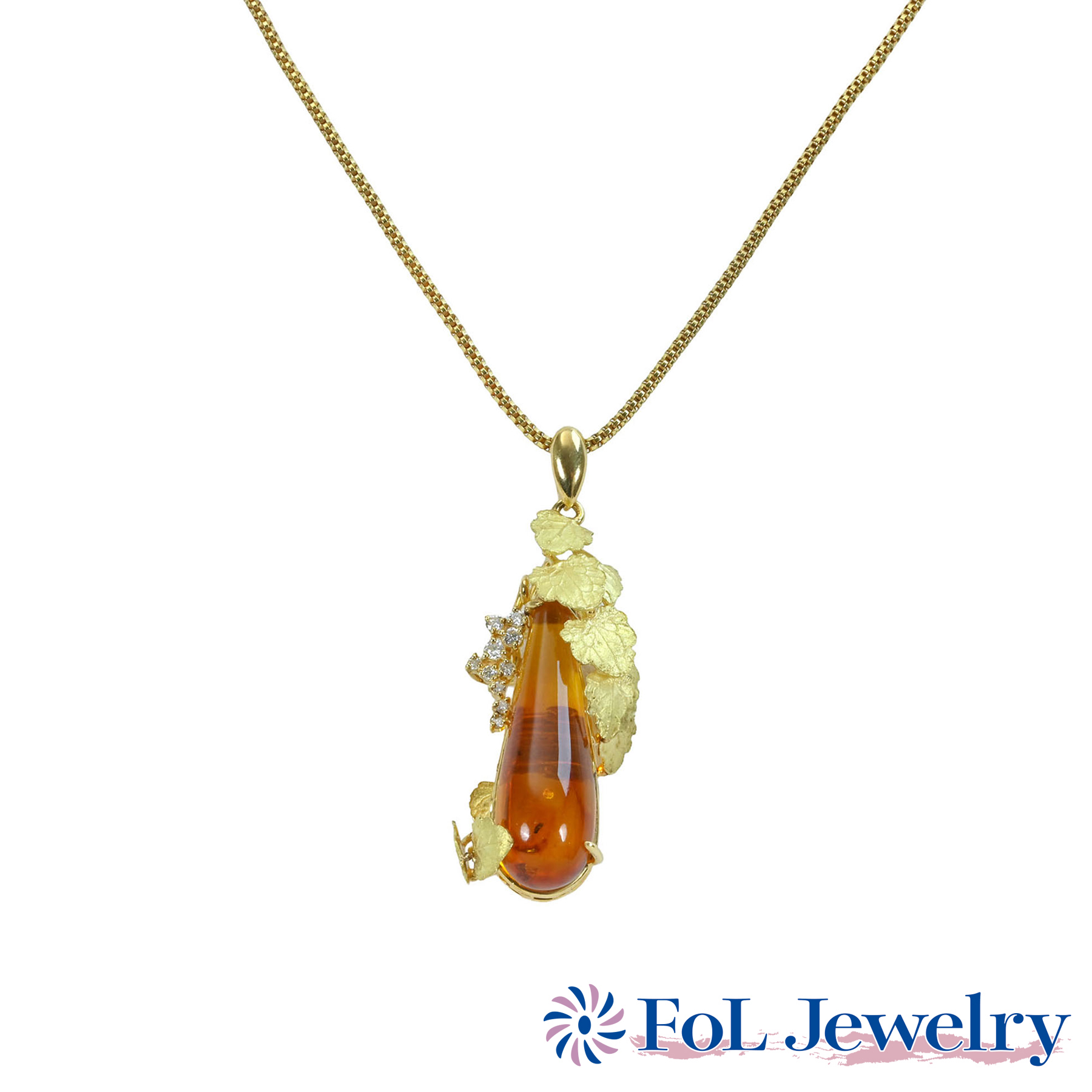 琥珀ペンダント K18YG D0.18ct