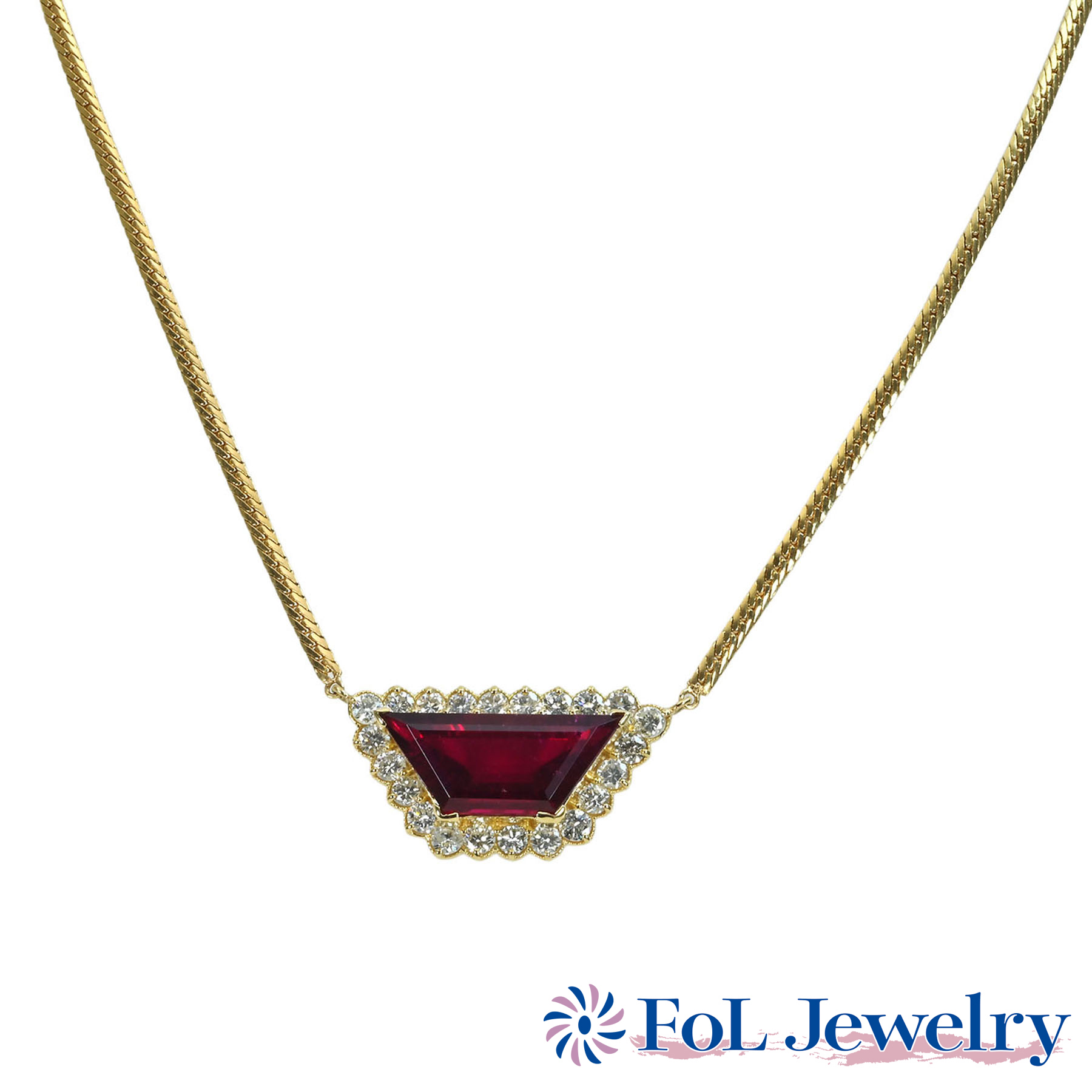 レッドトルマリンペンダント K18YG RT6.445ct D1.98ct