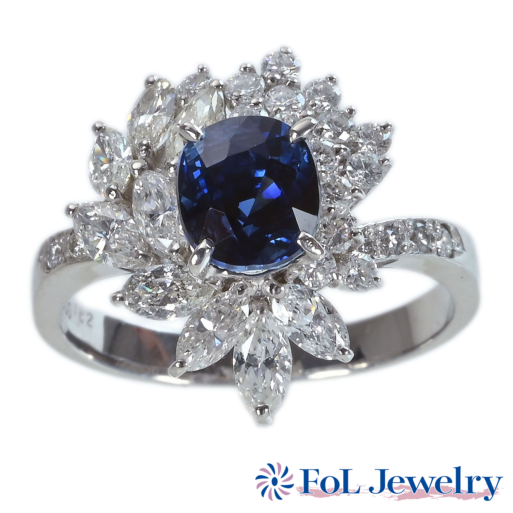 カンボジア産サファイアリング PT900 S1.62ct D1.16ct