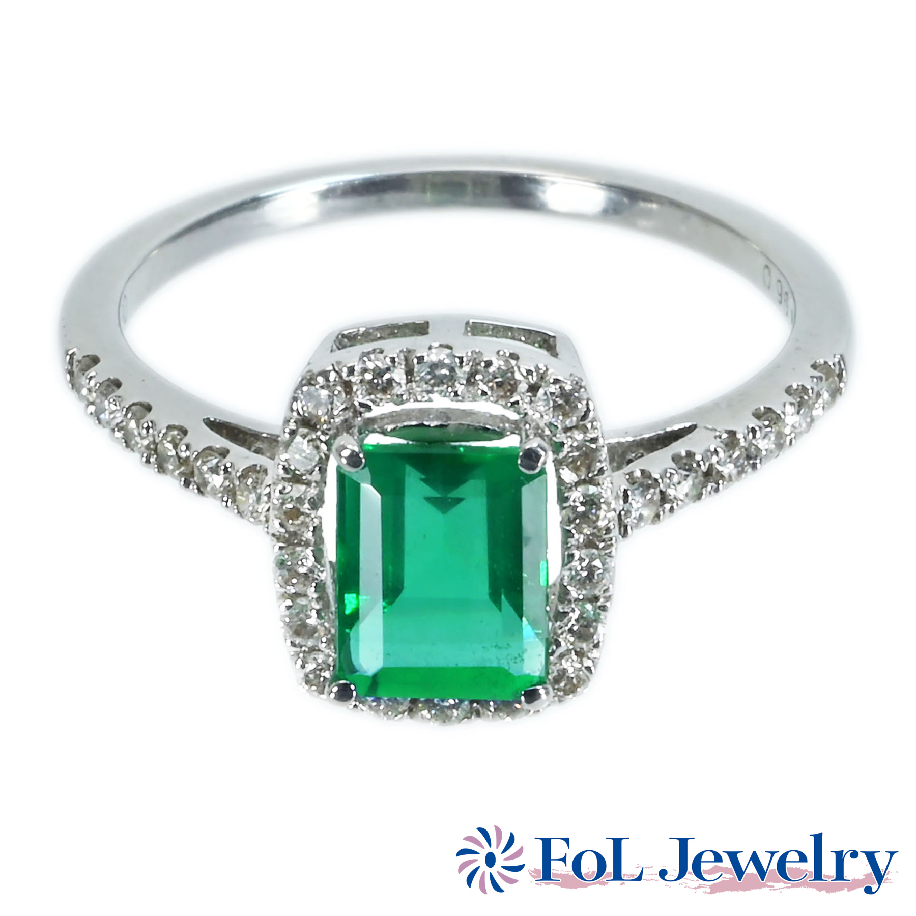 ザンビア産エメラルドリング K18WG E0.96ct D0.30ct