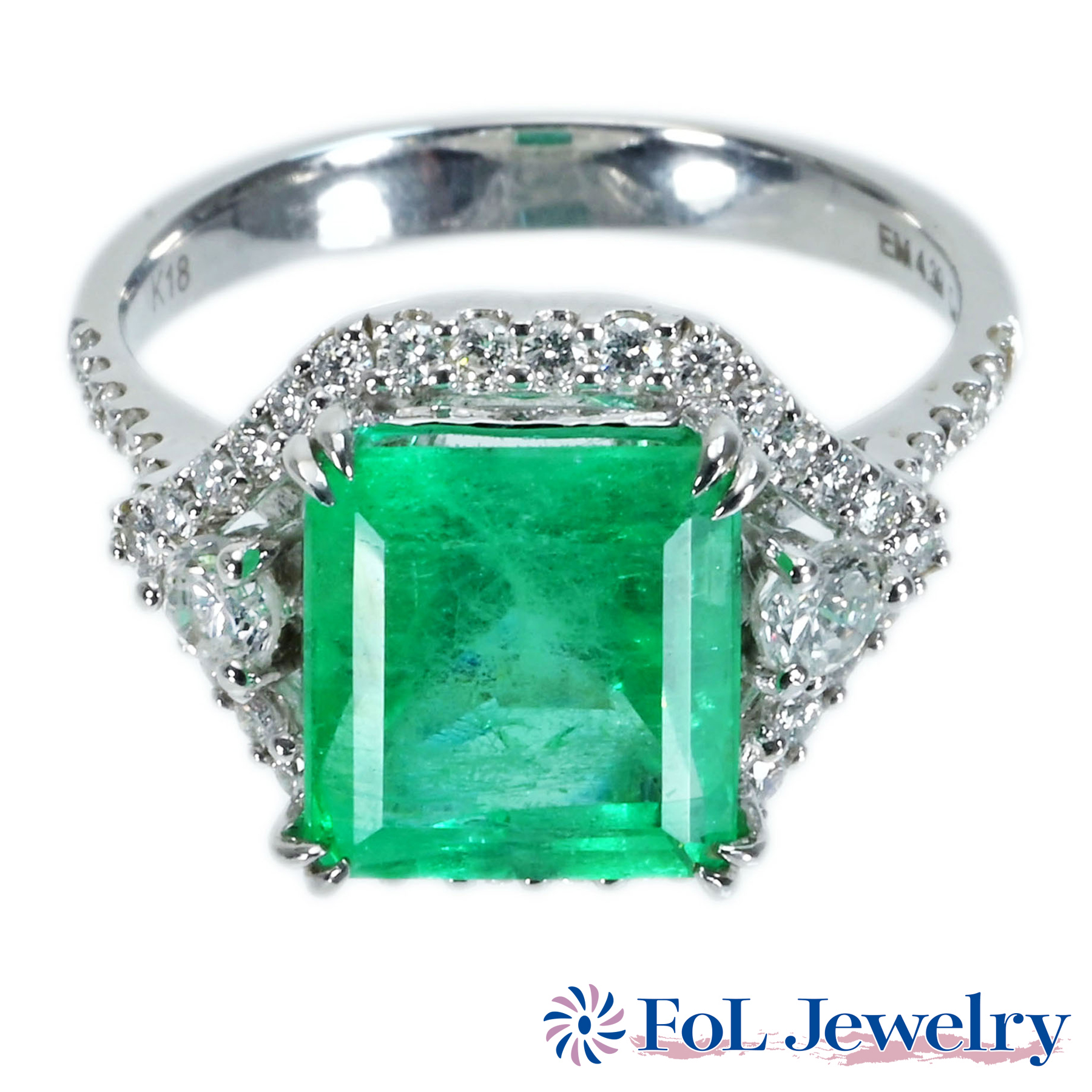 エメラルドリング K18WG E4.39ct D0.70ct