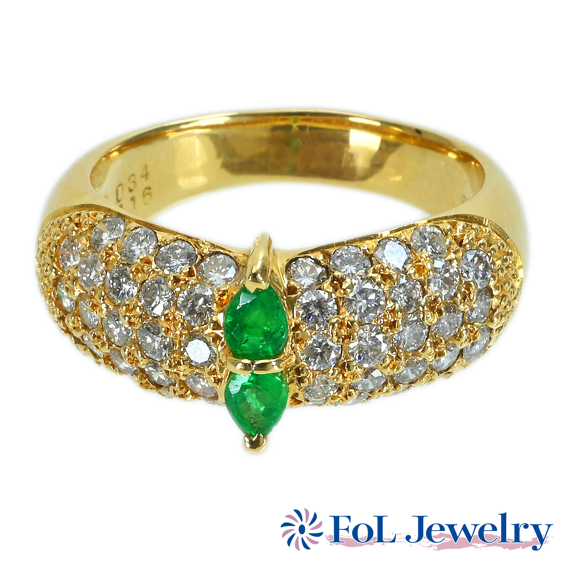 エメラルドリング K18YG E0.34ct D1.16ct