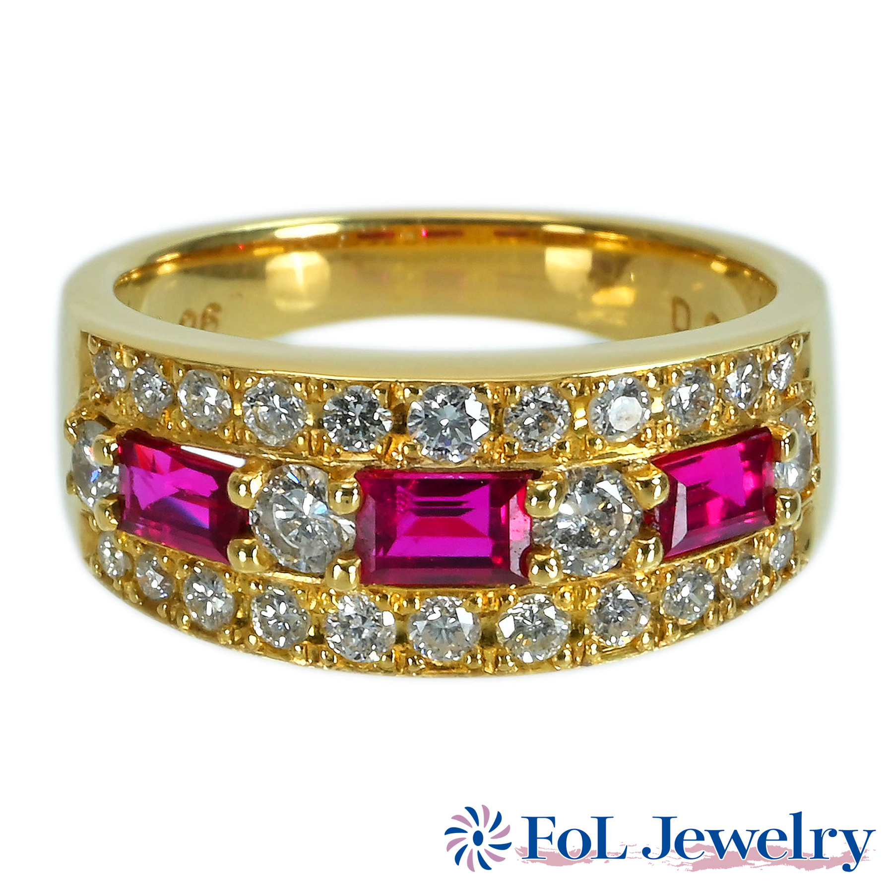 ルビーリング K18YG R0.65ct D0.33ct