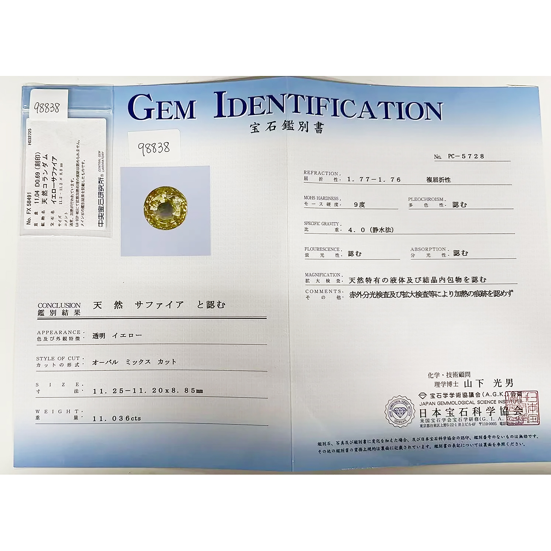 イエローサファイアリング PT900 YS11.036ct D0.69ct