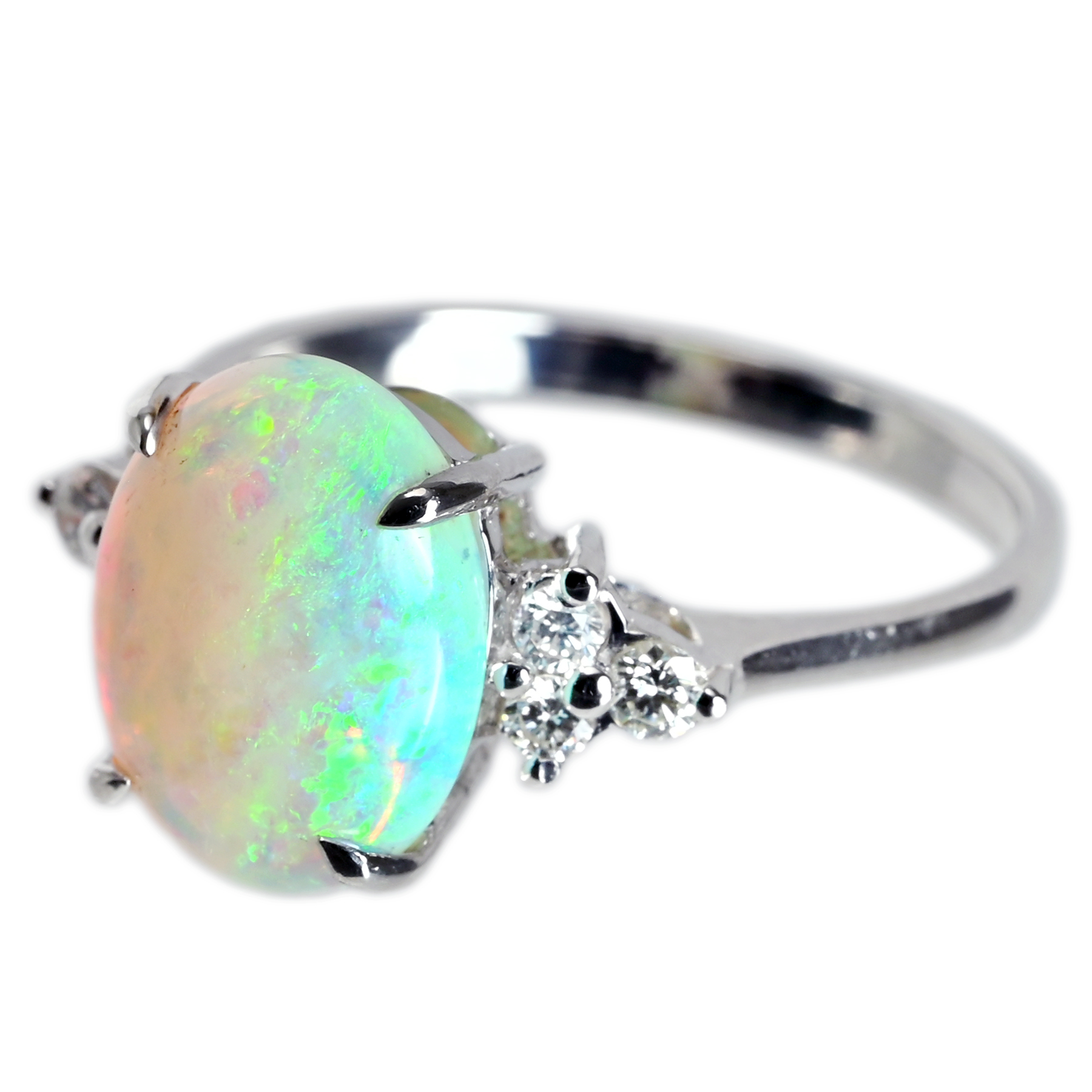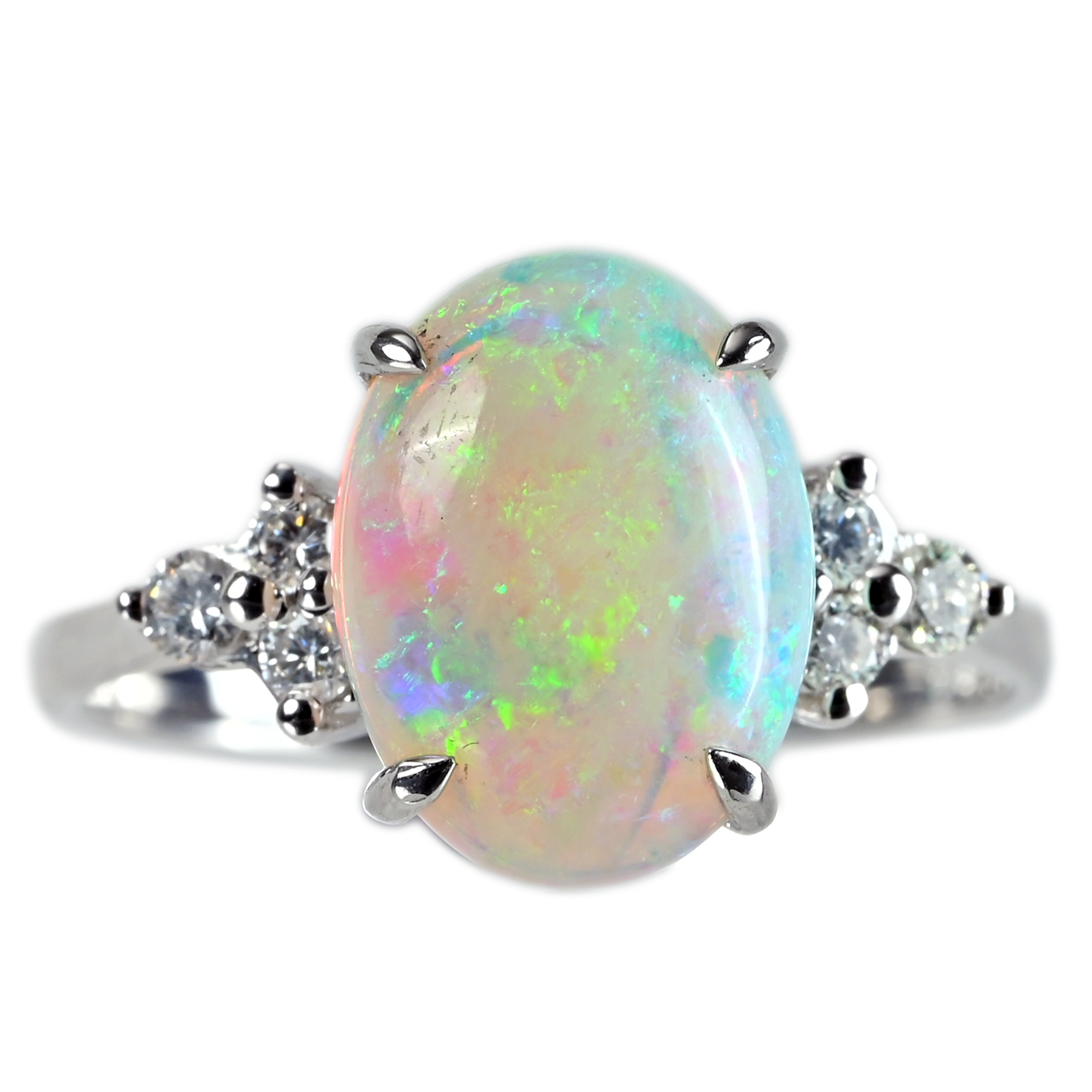 ホワイトオパールリング K18WG OP2.44ct D0.20ct
