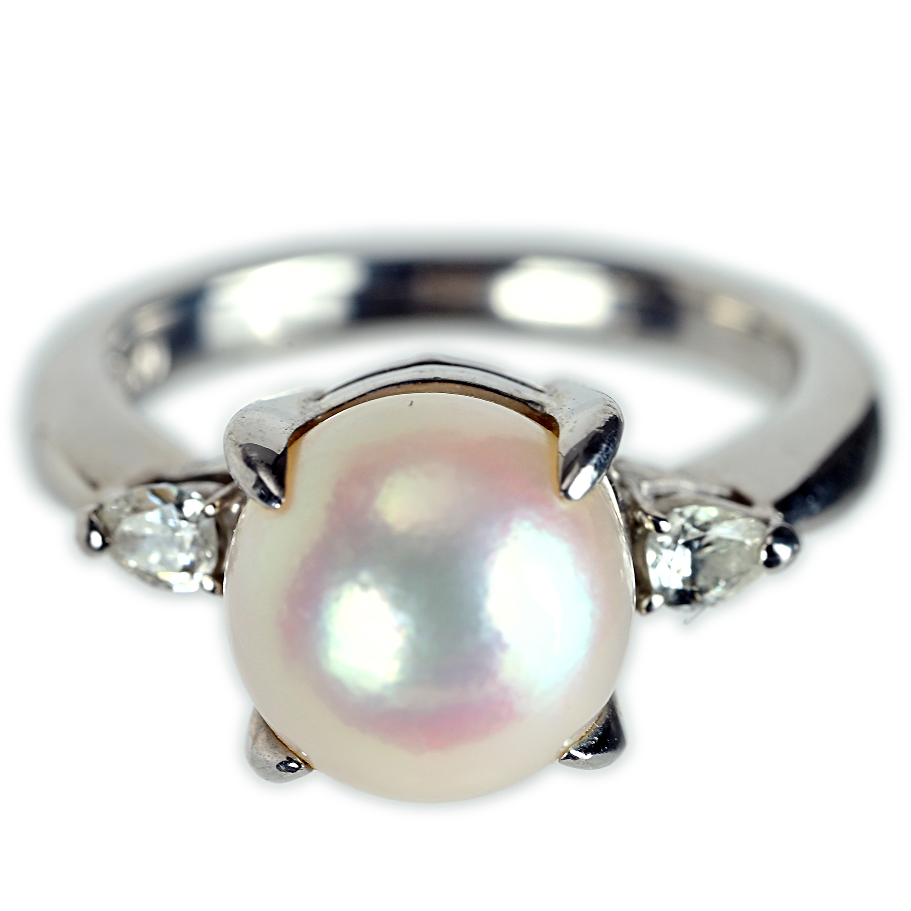 アコヤパールリング PT850 9.5mm D0.18ct | FoL Jewelry