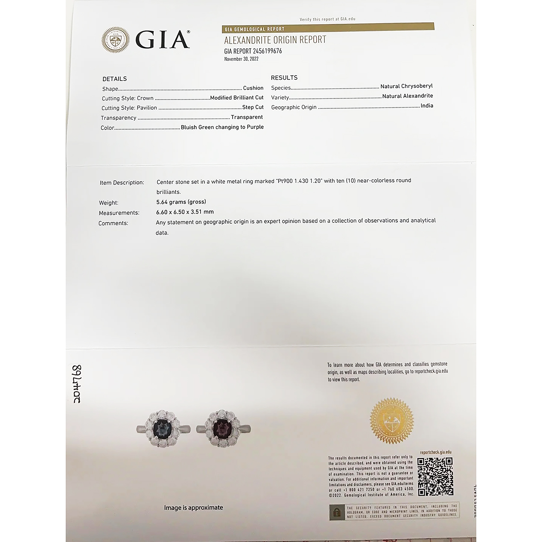 インド産アレキサンドライトリング PT900 A1.43ct D1.20ct | FoL Jewelry