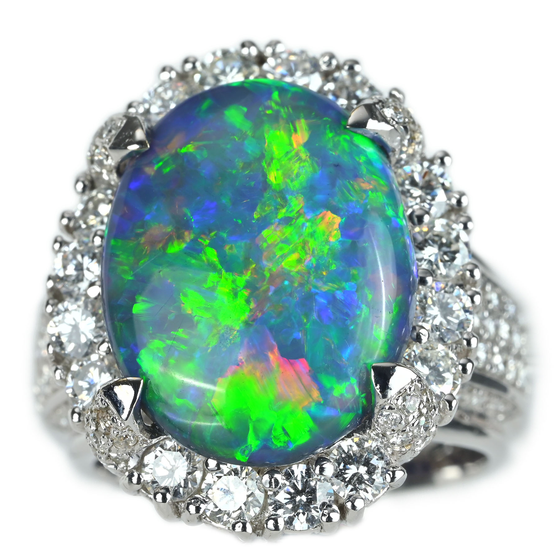 ブラックオパールリング K18WG BLACK OPALBO7.40ct D2.35ct