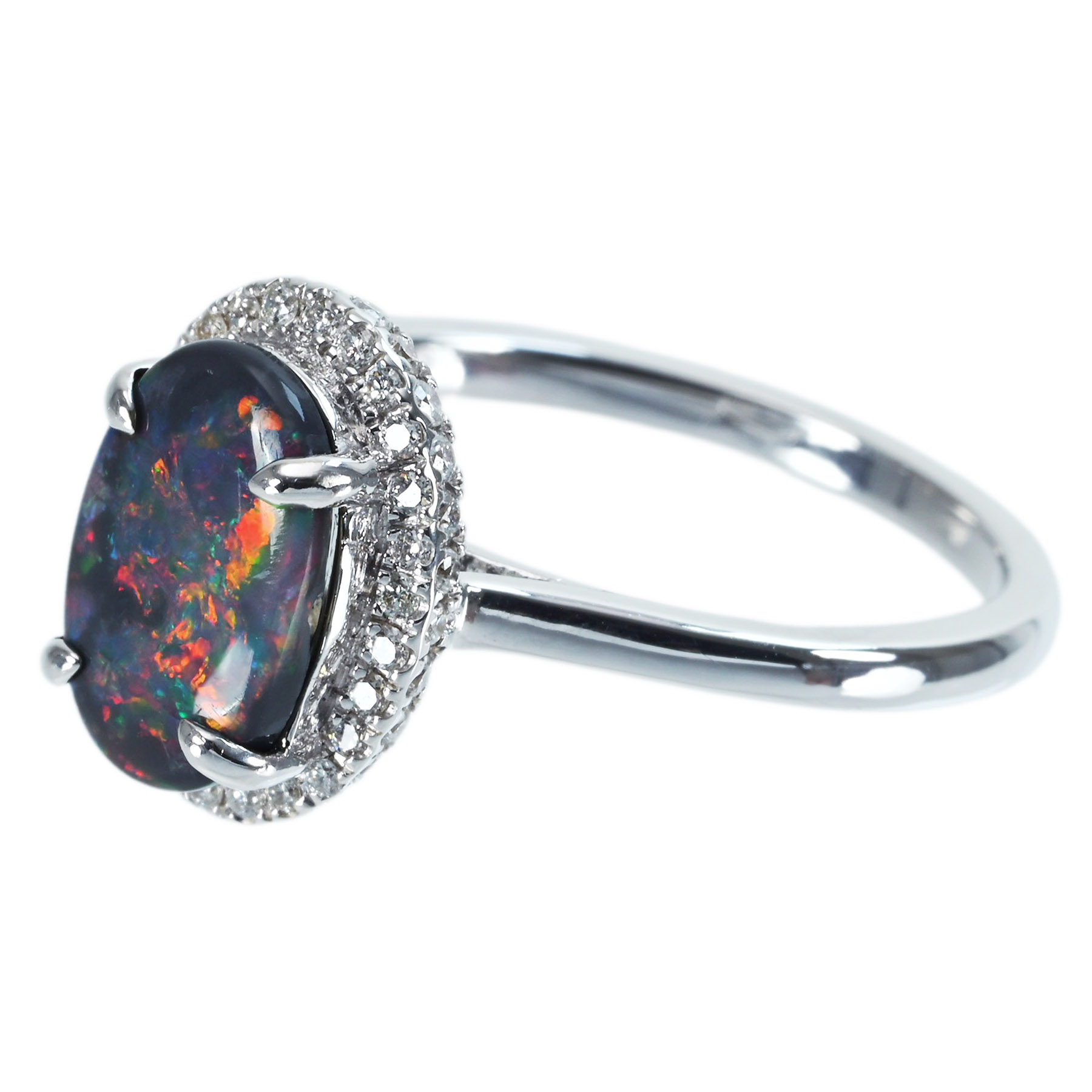 ブラックオパールリング K18WG BOP1.211ct D0.31ct