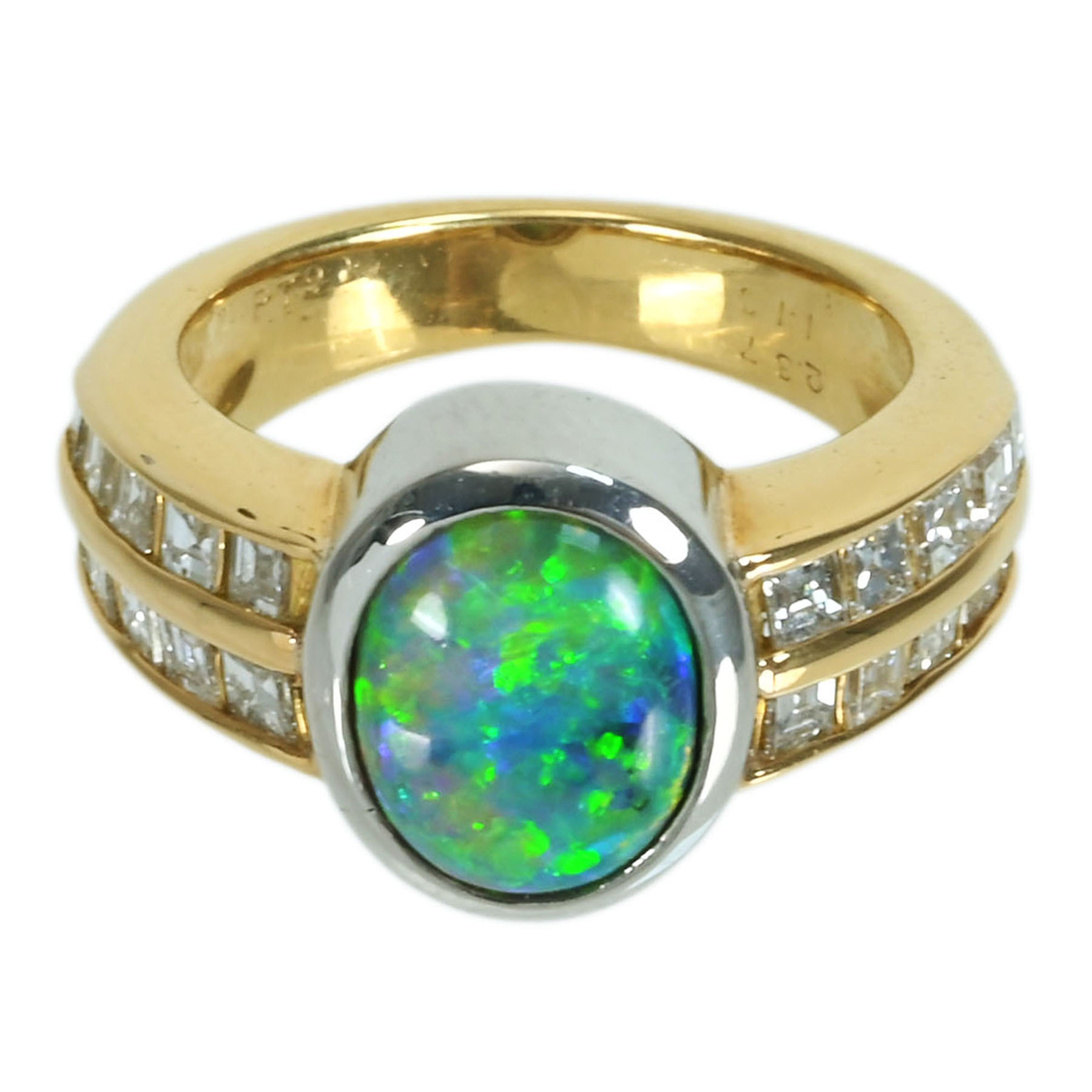 ブラックオパールリング K18YG/PT900 BO2.37ct D1.13ct