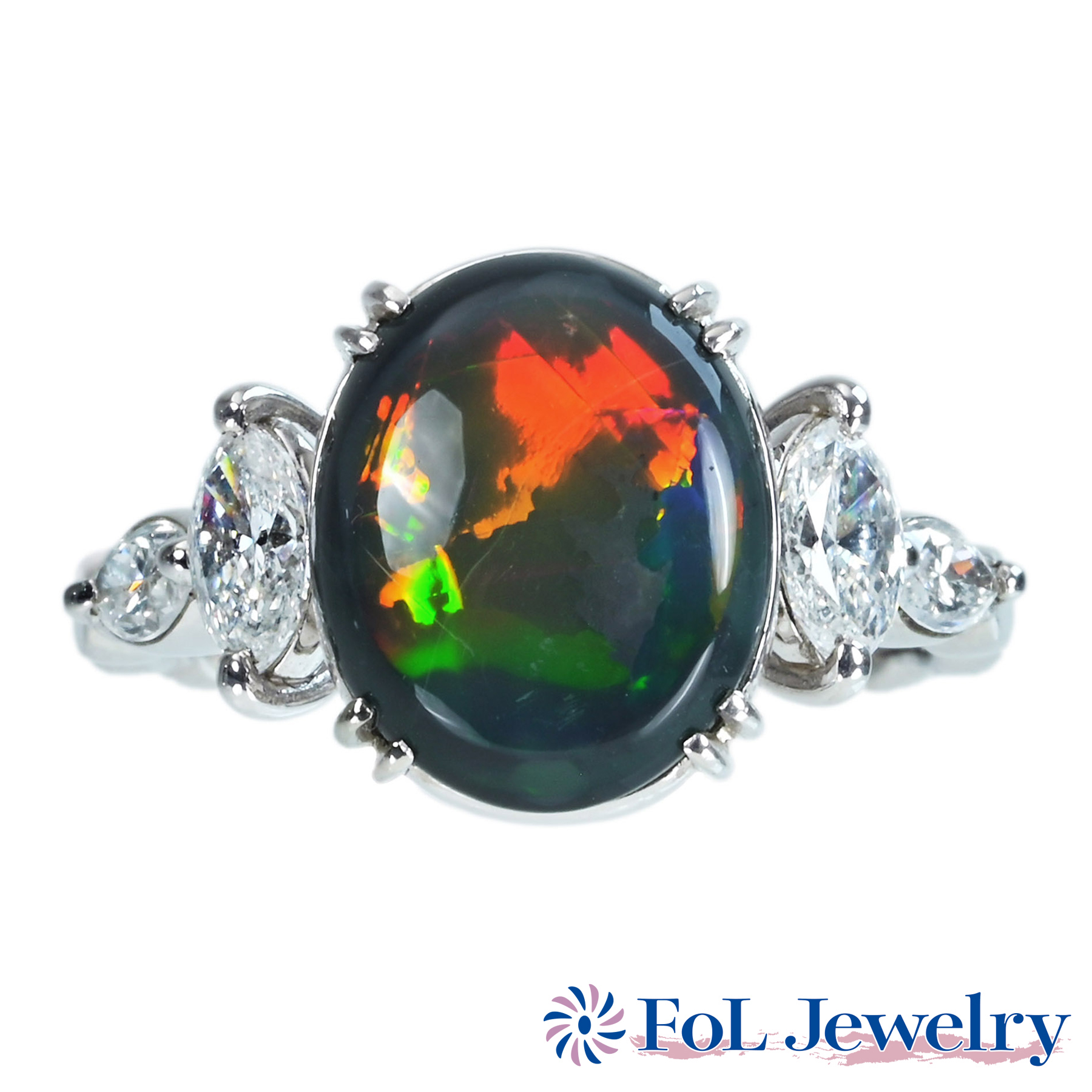 ブラックオパールリング PT900 BOP3.45ct D0.624ct