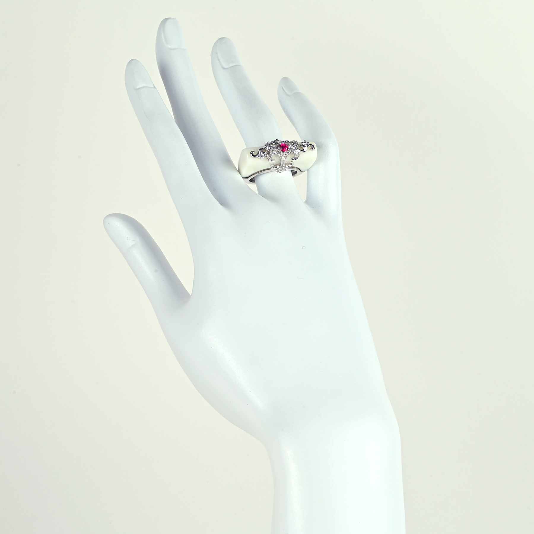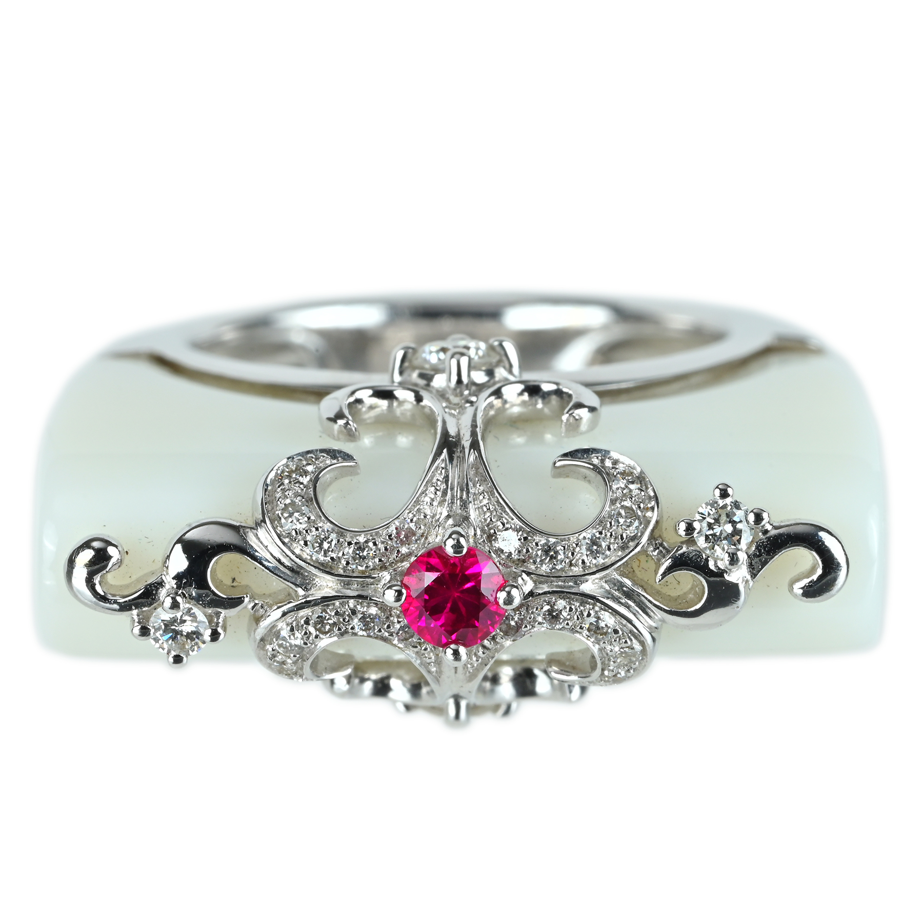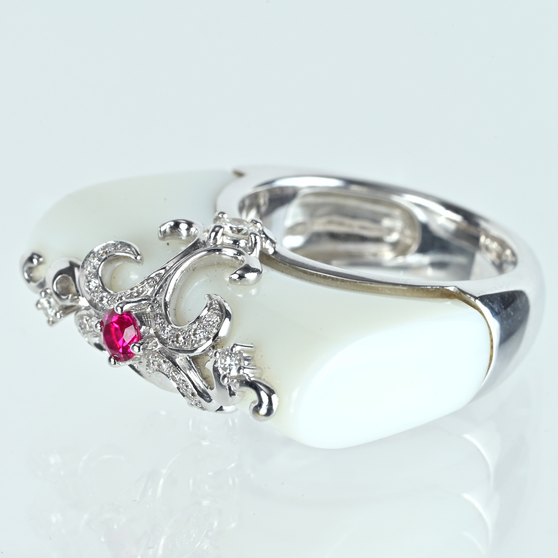 カルセドニー·ルビーリング K18WG R0.17ct C23.65ct D0.28ct