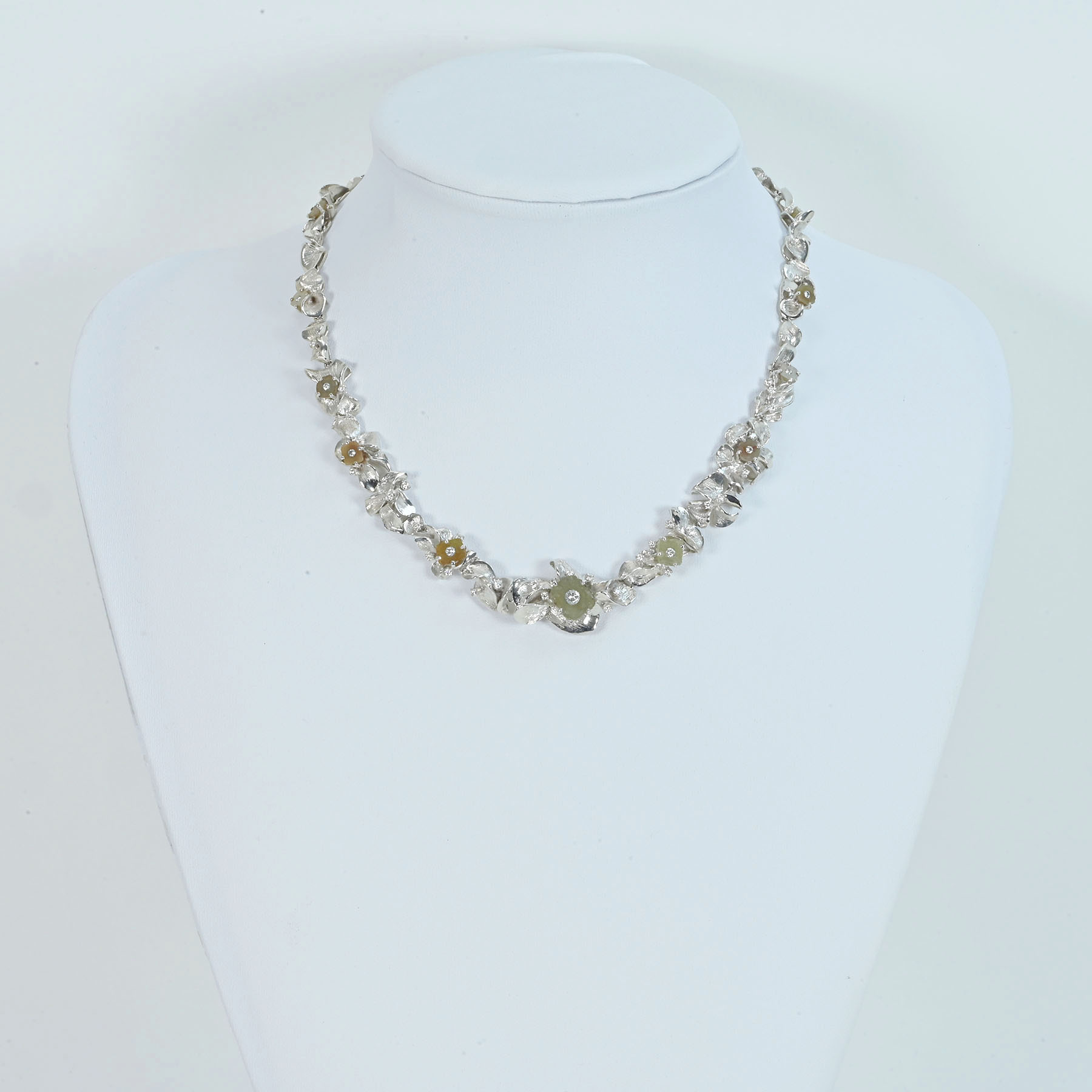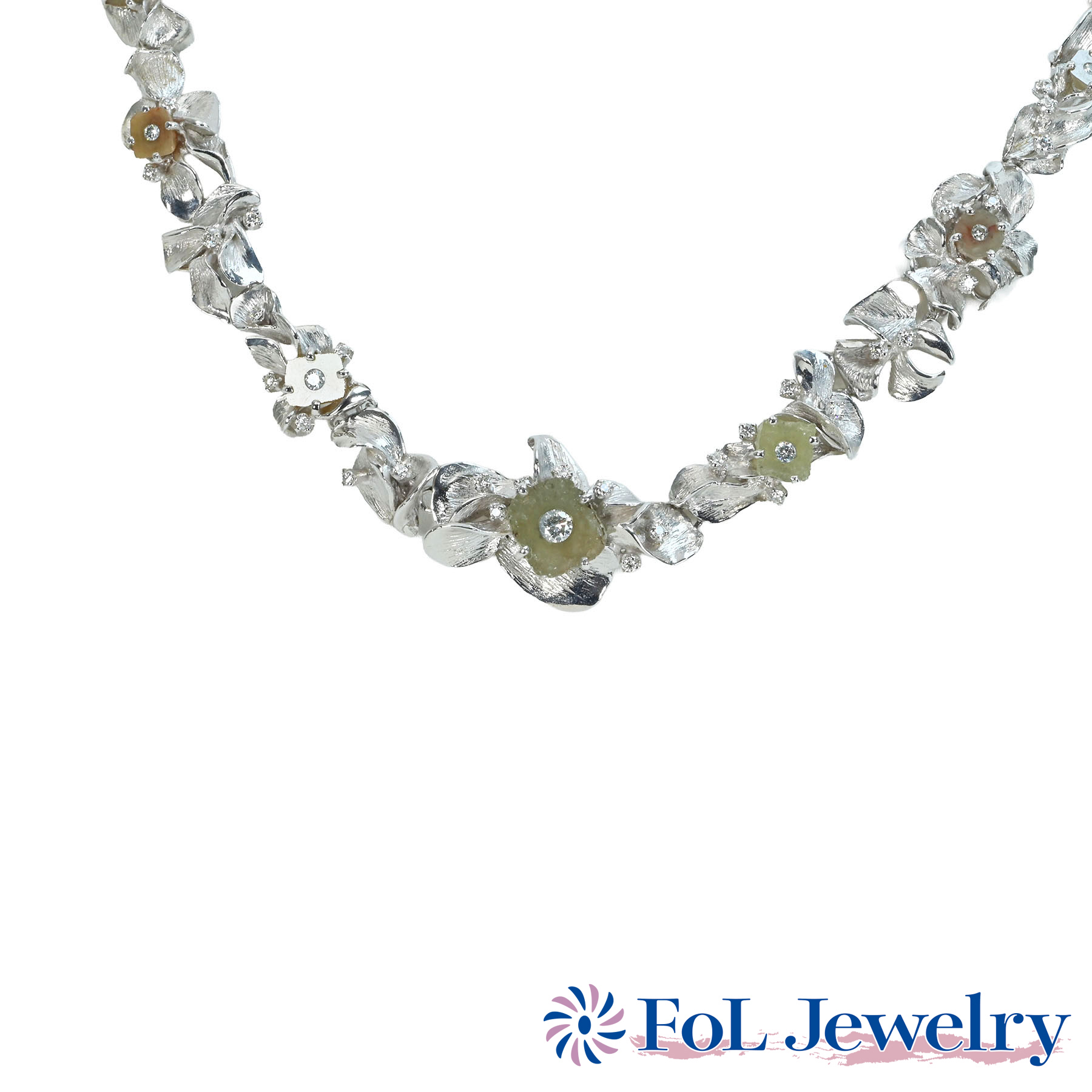 カラードストーンネックレス K18WG CS13.647ct D1.08ct