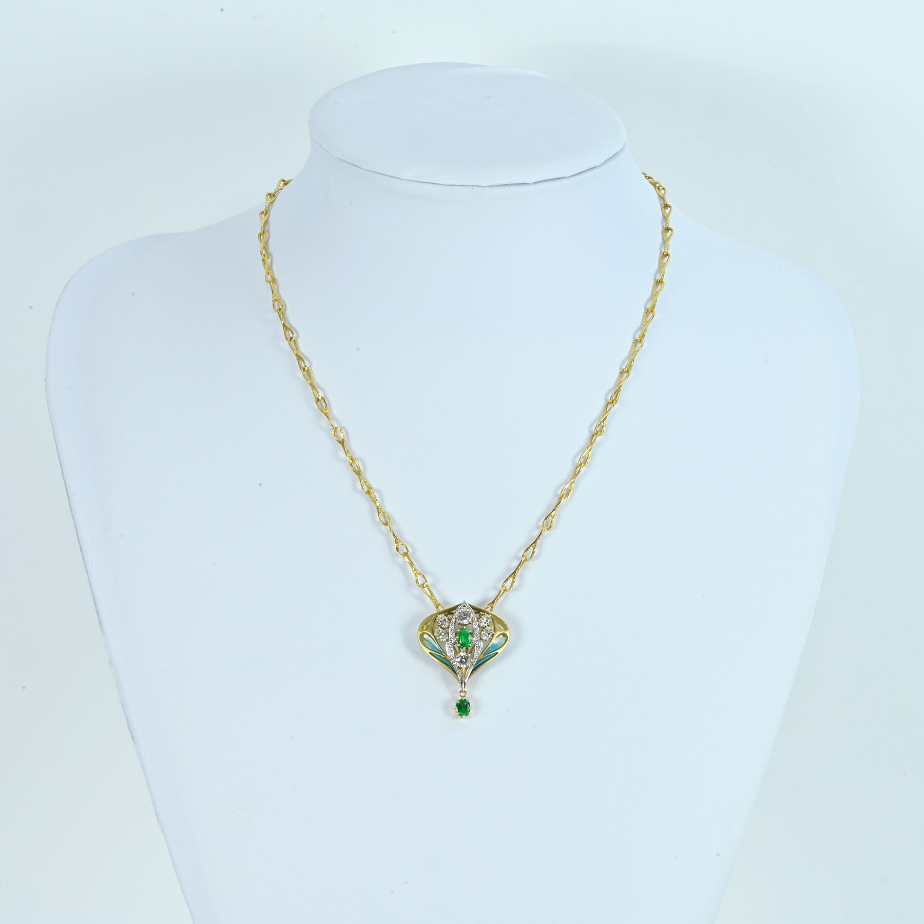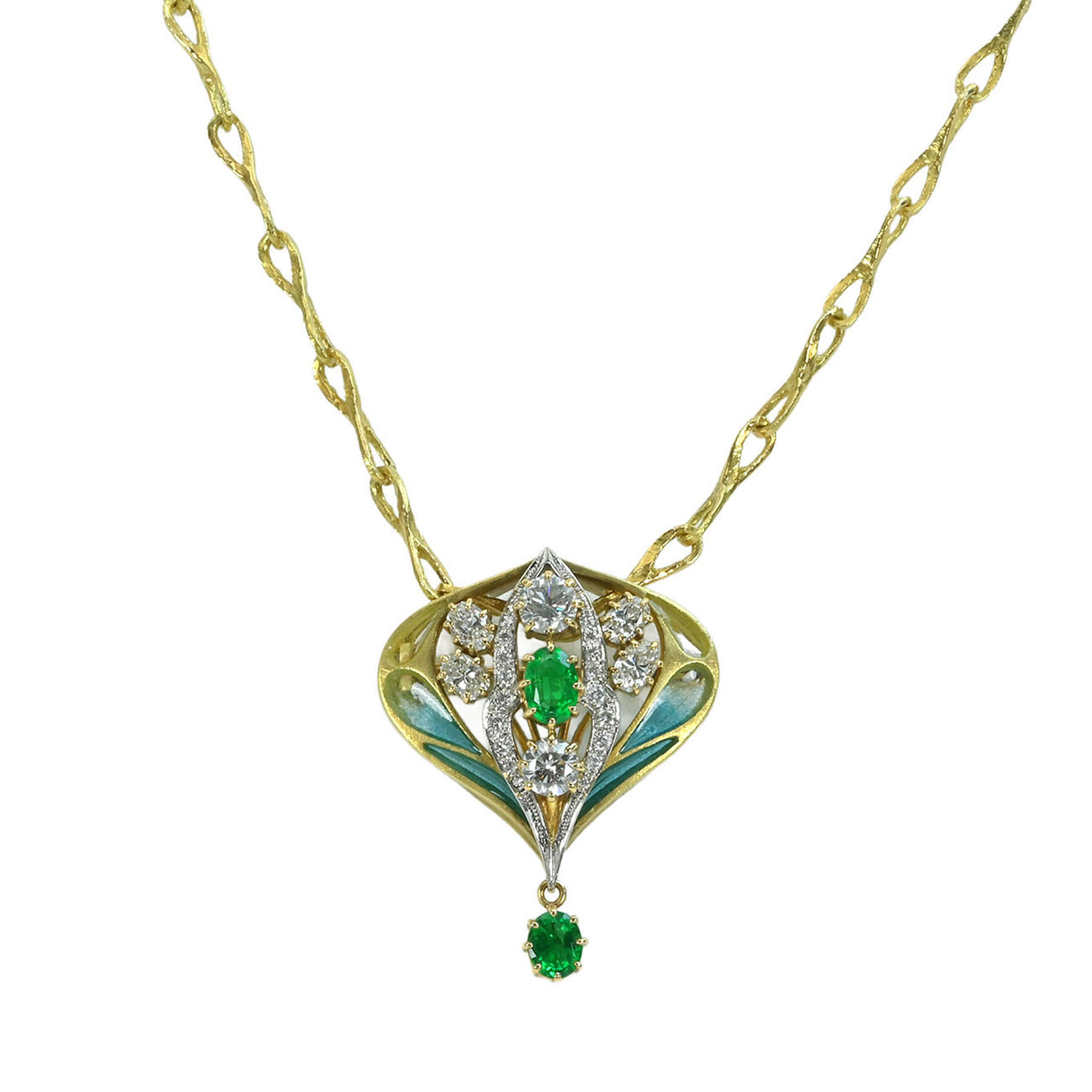 エメラルドペンダント K18YG/PT900/Enamel E0.78ct D1.35ct D0.14ct | FoL Jewelry