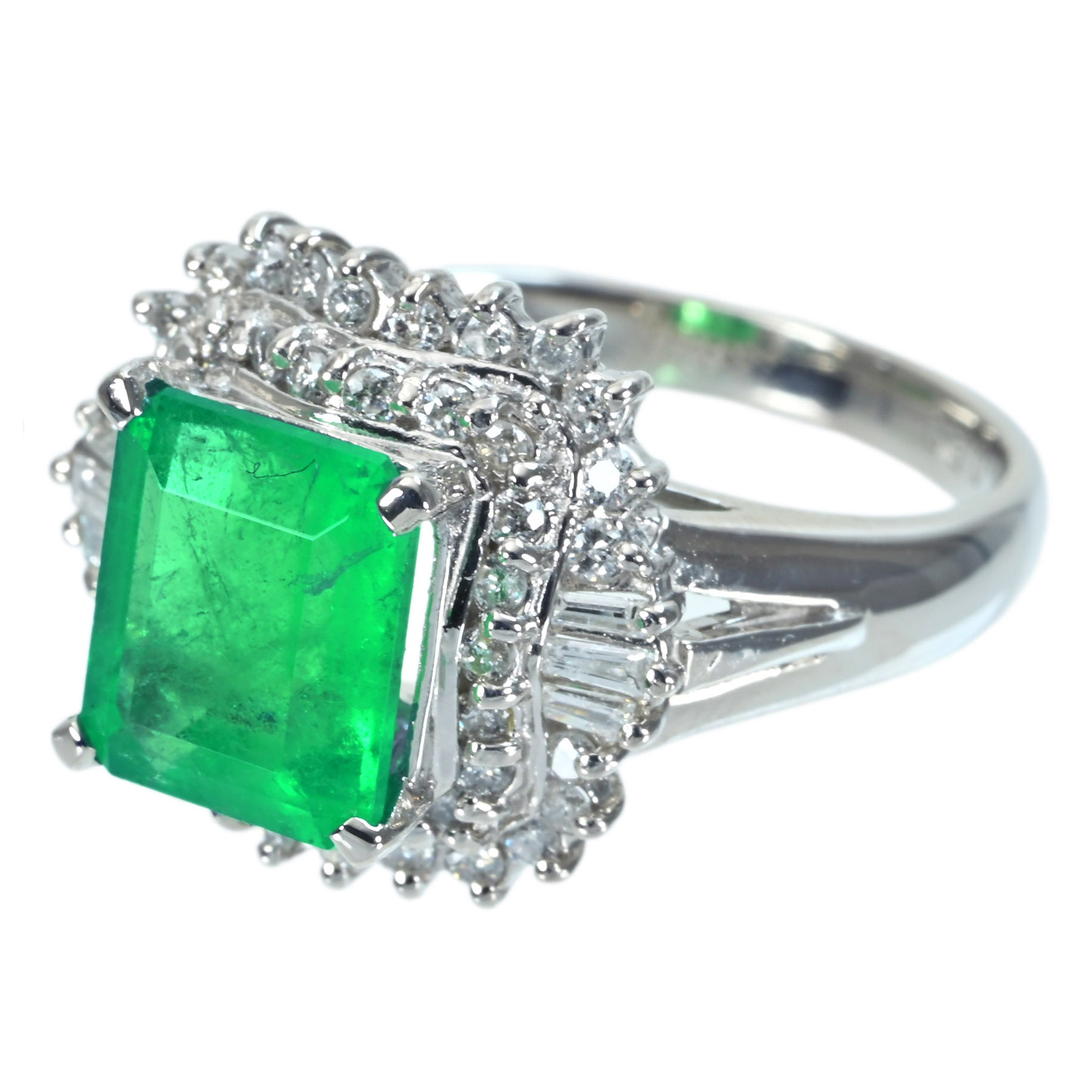 エメラルドリング PT900 E2.10ct D0.50ct D0.20ct